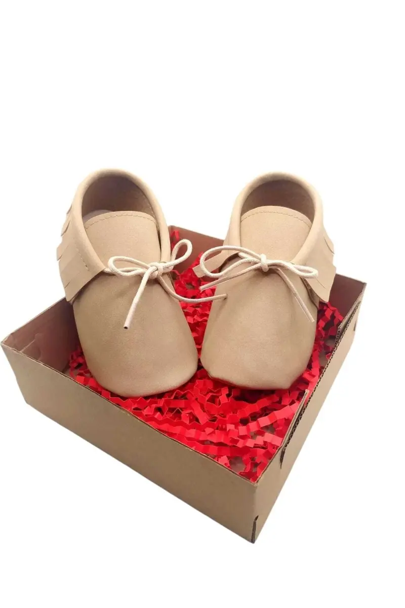 Sütlükahve Süet Deri Makosen Bebek Ayakkabısı Bebek Patiği-SÜTLÜKAHVE