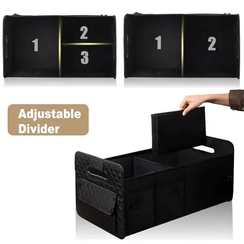 JiatuA SUV uchun avtomobil yukxona tashkilotchisi, Avtomobil saqlash tashkilotchisi Yiqiladigan ko'p bo'linmali konteyner qutisi, Ayollar/Erkaklar uchun sozlanishi avtomobil aksessuarlari, Katta qora