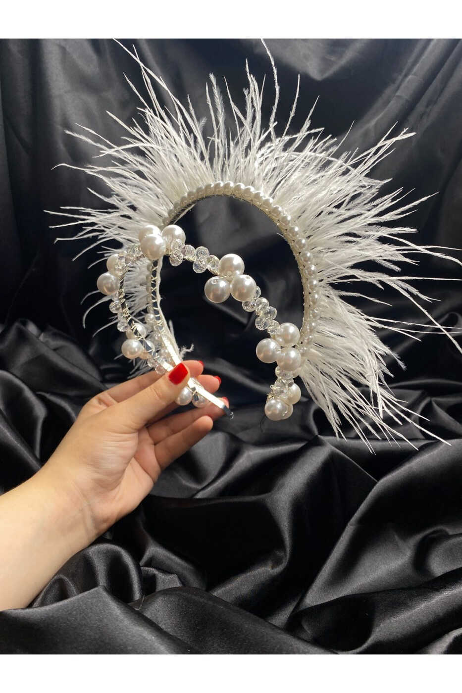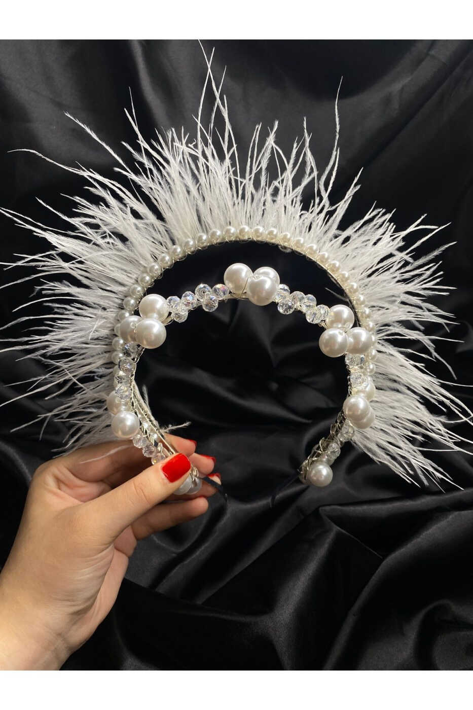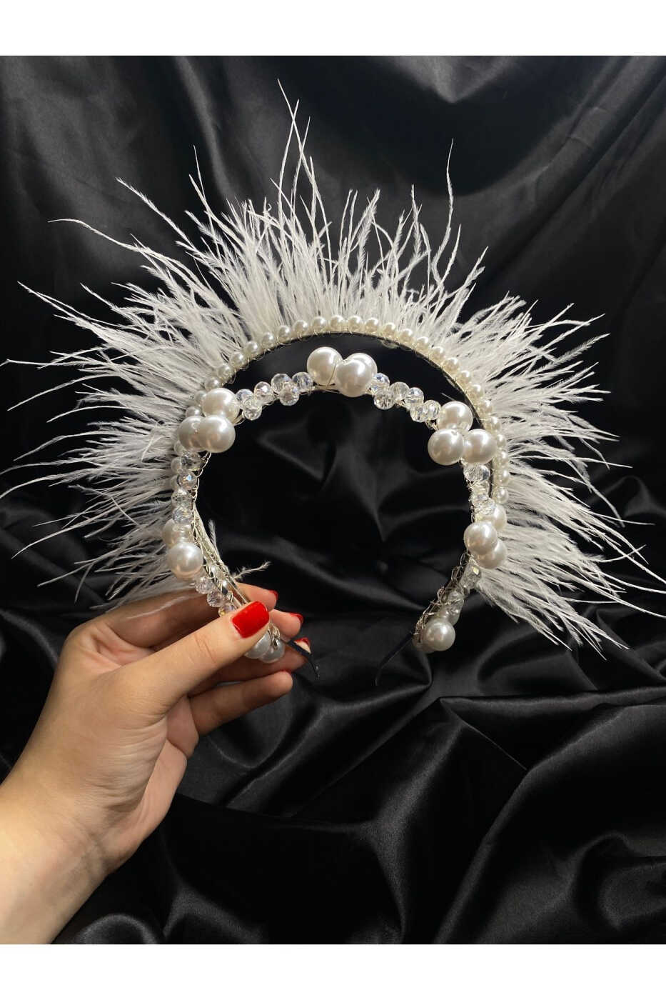 Эта изящная свадебная тиара, разработанная для безупречного образа в ваш особенный день, станет идеальным выбором, чтобы вы почувствовали себя принцессой. Украшенная белыми жемчужинами и перьями, эта тиара добавит вашим волосам элегантности и изящества.