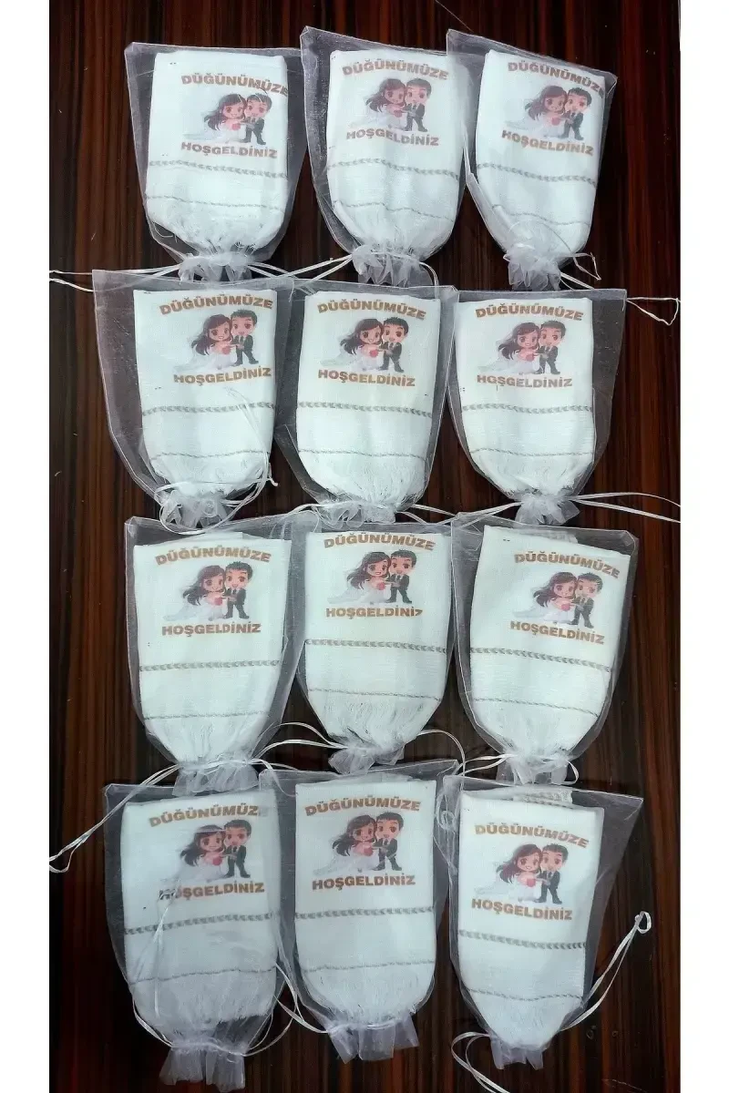 Свадебное полотенце в тюлевом мешочке — стильный и практичный подарок для гостей на свадьбу, помолвку, обручение, мавлид и другие особые случаи. Этот набор из 12 штук с надписью «Добро пожаловать на нашу свадьбу» подарит вашим близким незабываемые воспоминания. Эти полотенца, особенно подходящие для использования в автомобильных колоннах или на приемах, предлагают как практичное, так и эстетичное решение. Каждое полотенце поставляется с тюлевым мешочком, что делает презентацию вашего подарка еще более элегантной. Этот продукт, предлагаемый с гарантией YÖRÜK TUHAFİYE, также привлекает внимание своей экономичной ценой. Благодаря тонкому плетению его легко носить с собой и использовать. Если вы хотите создать стильный штрих в свадебных приготовлениях, не напрягая свой бюджет, этот набор полотенец идеально подойдет вам. Это идеальный выбор, чтобы сделать приятный сюрприз вашим гостям и сделать ваш особенный день еще более значимым. Помните, эти полотенца одноразовые, что обеспечивает гигиеническое использование. Если вы ищете практичное и стильное решение для ваших приемов, колонн или других специальных мероприятий, свадебное полотенце в тюлевом мешочке — это возможность, которую нельзя упустить.