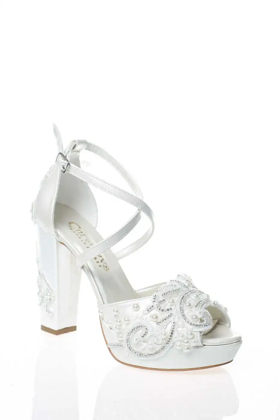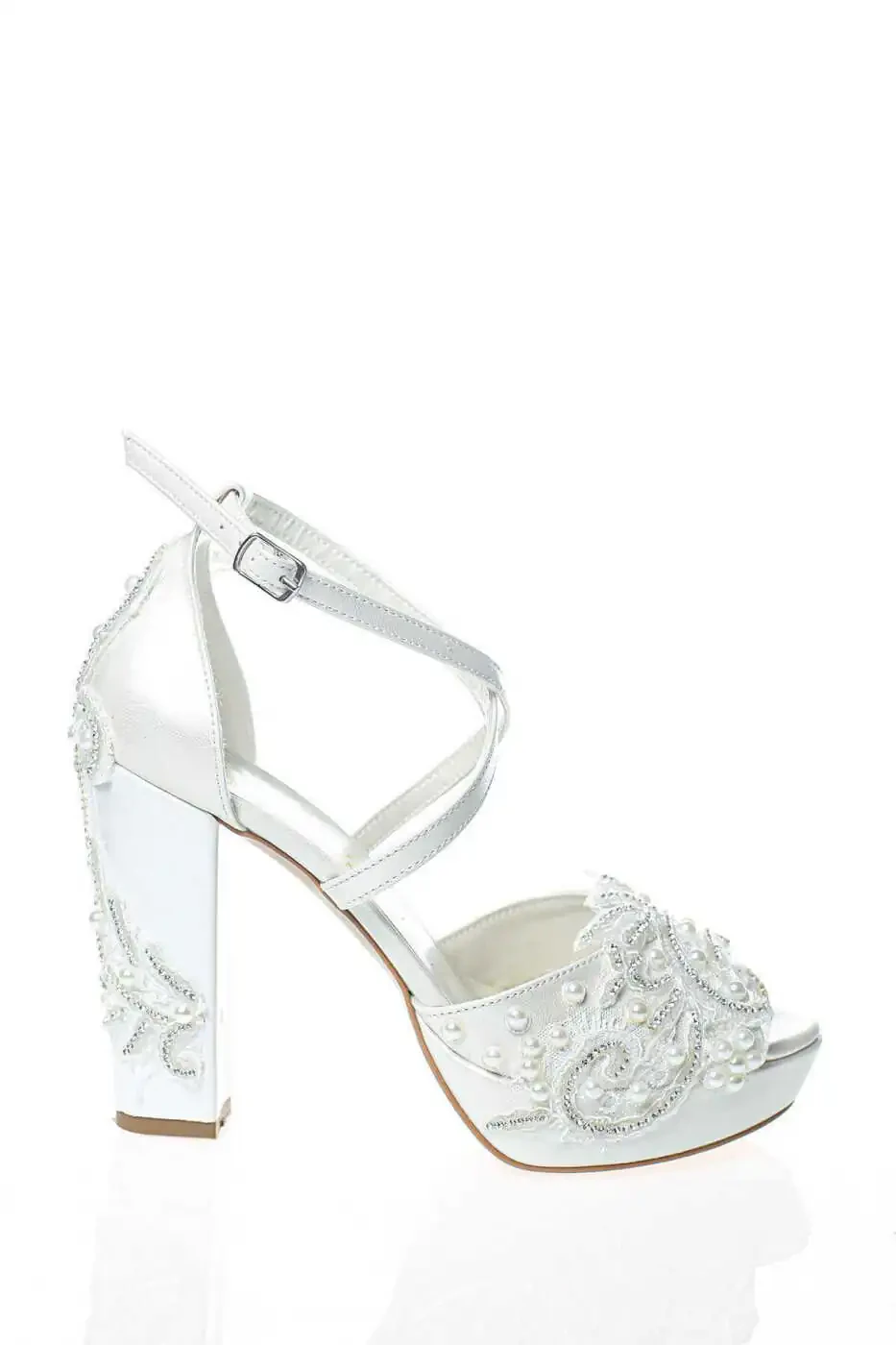 Верхняя часть туфли украшена жемчугом, тщательно обработанным до мельчайших деталей, дополняя блеск вашего свадебного платья. Каблук туфли элегантно оформлен и обеспечивает удобную ходьбу. Высота делает вас выше и изящнее, а также обеспечивает комфорт в течение всей ночи. Внутренняя часть туфли отделана мягким и дышащим материалом, поэтому ваши ноги остаются комфортными в течение всего дня.