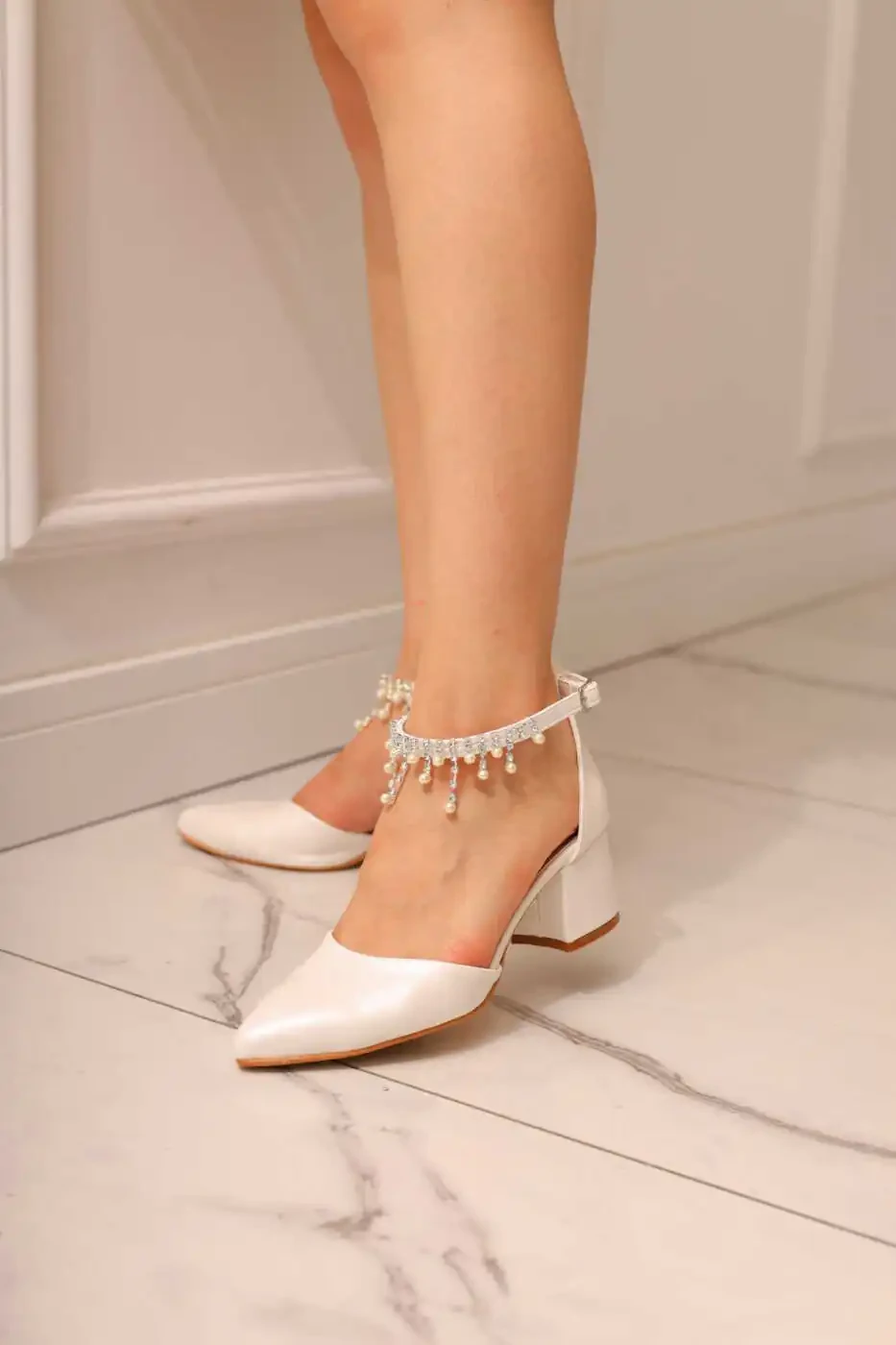 Идеальный выбор для свадьбы мечты! Эти свадебные туфли, выделяющиеся своим элегантным и стильным дизайном, имеют закрытый носок и модель с ремешком на щиколотке, которая балует ваши ноги, а каблук высотой 6 см делает вас выше и элегантнее. Мягкая и удобная внутренняя подкладка обеспечивает комфортное использование в течение всего дня, а белый цвет идеально сочетается с любым свадебным платьем, дополняя вас ослепительным образом.