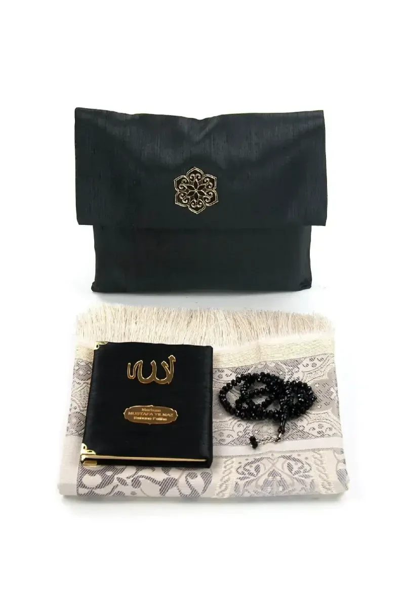 С обложкой из шантунга, привлекающей внимание, книга персонализирована специальной именной табличкой. В книге есть молитвенный коврик, четки и мешочек, что упрощает ваши молитвы и придает эстетический вид.