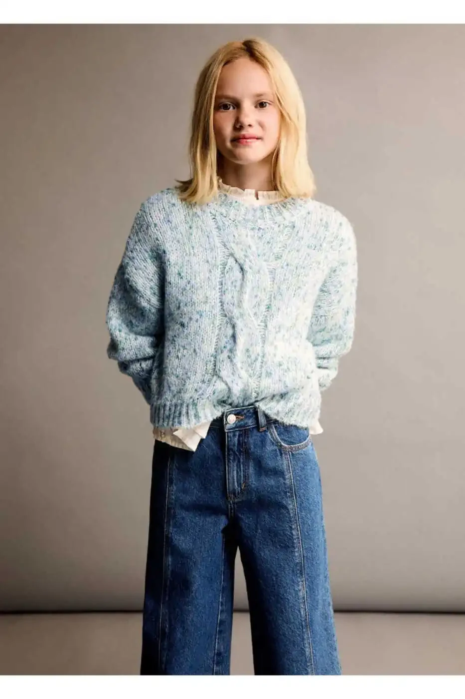 вязаный свитер, двухцветный свитер, свитер mango, толстая вязка, круглый вырез, свитер с косами