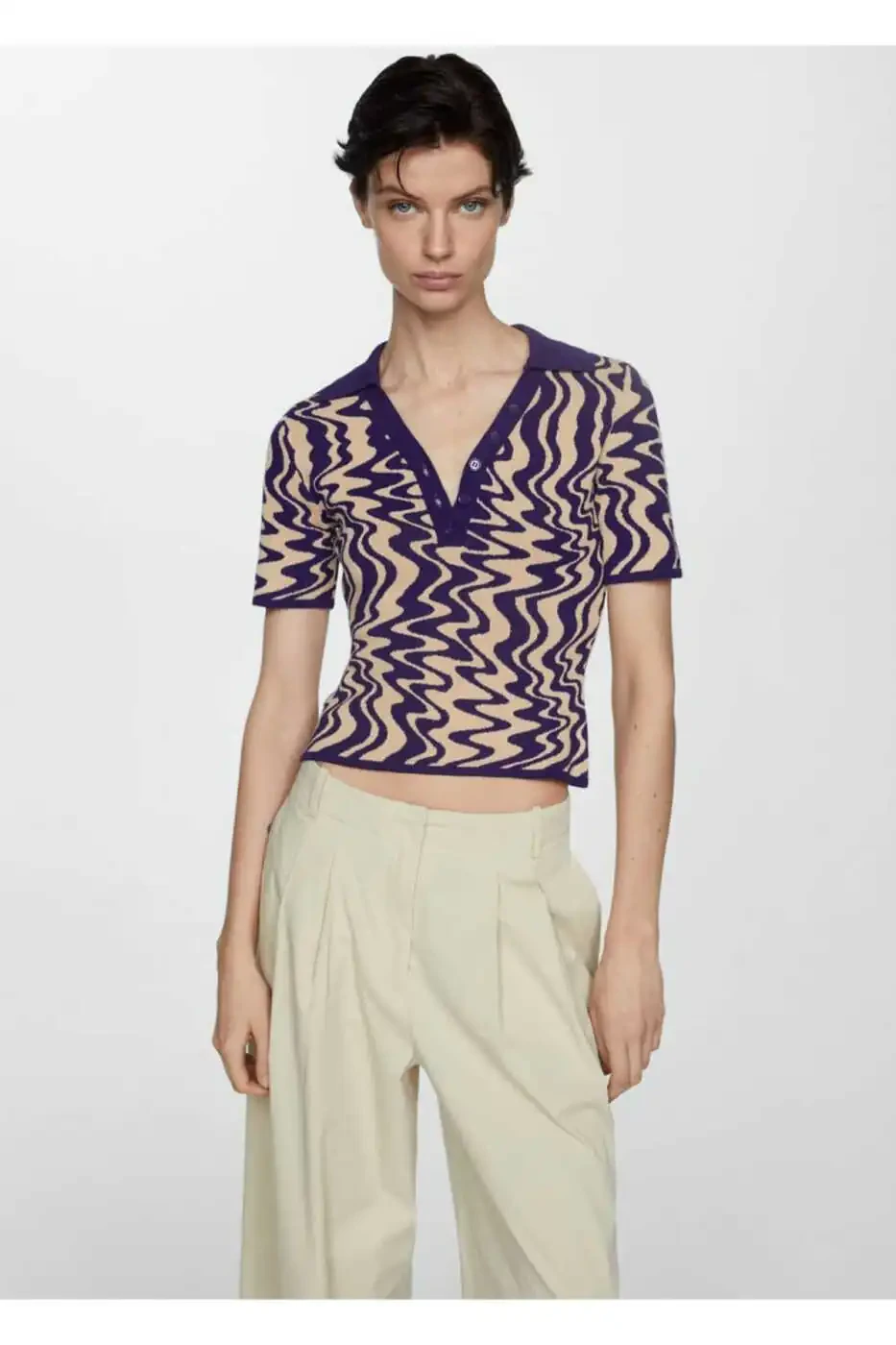 Поло-свитер | Облегающий, с узором, короткий рукав, контрастные детали