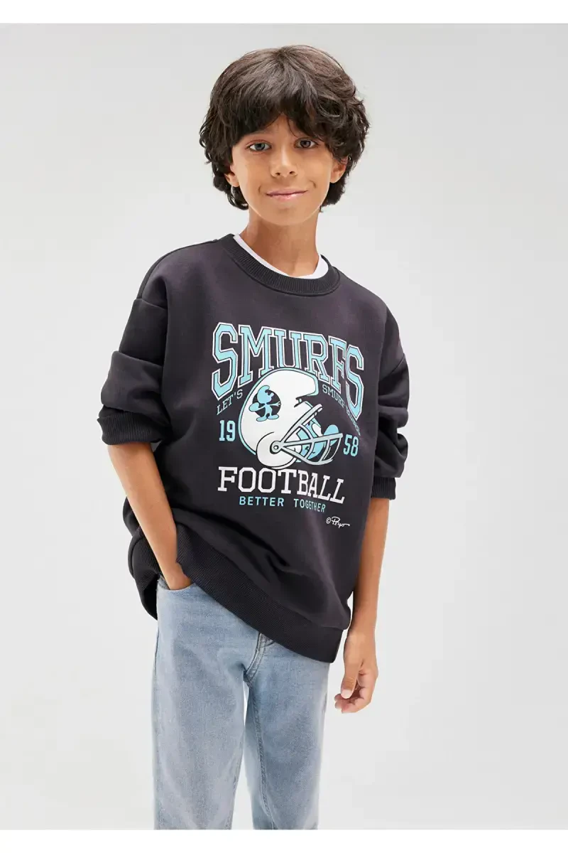 Свитшот антрацитового цвета с принтом Смурфики: стильный и удобный для мальчиков