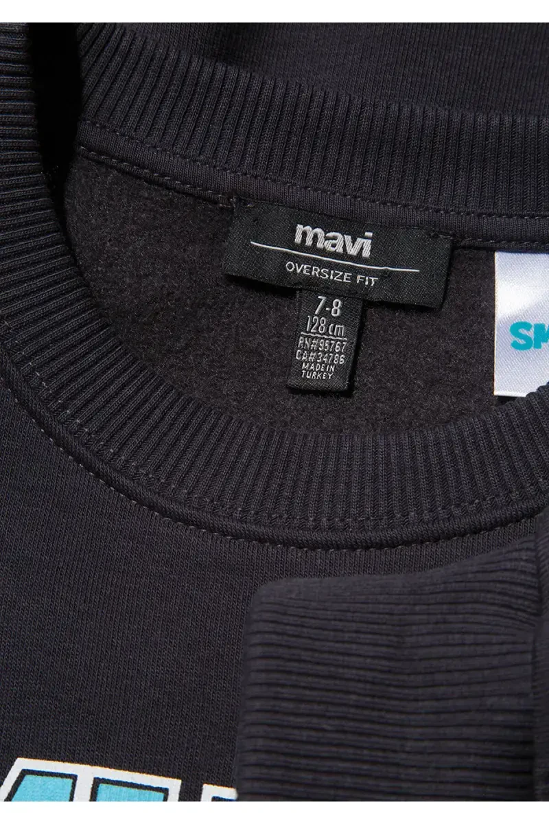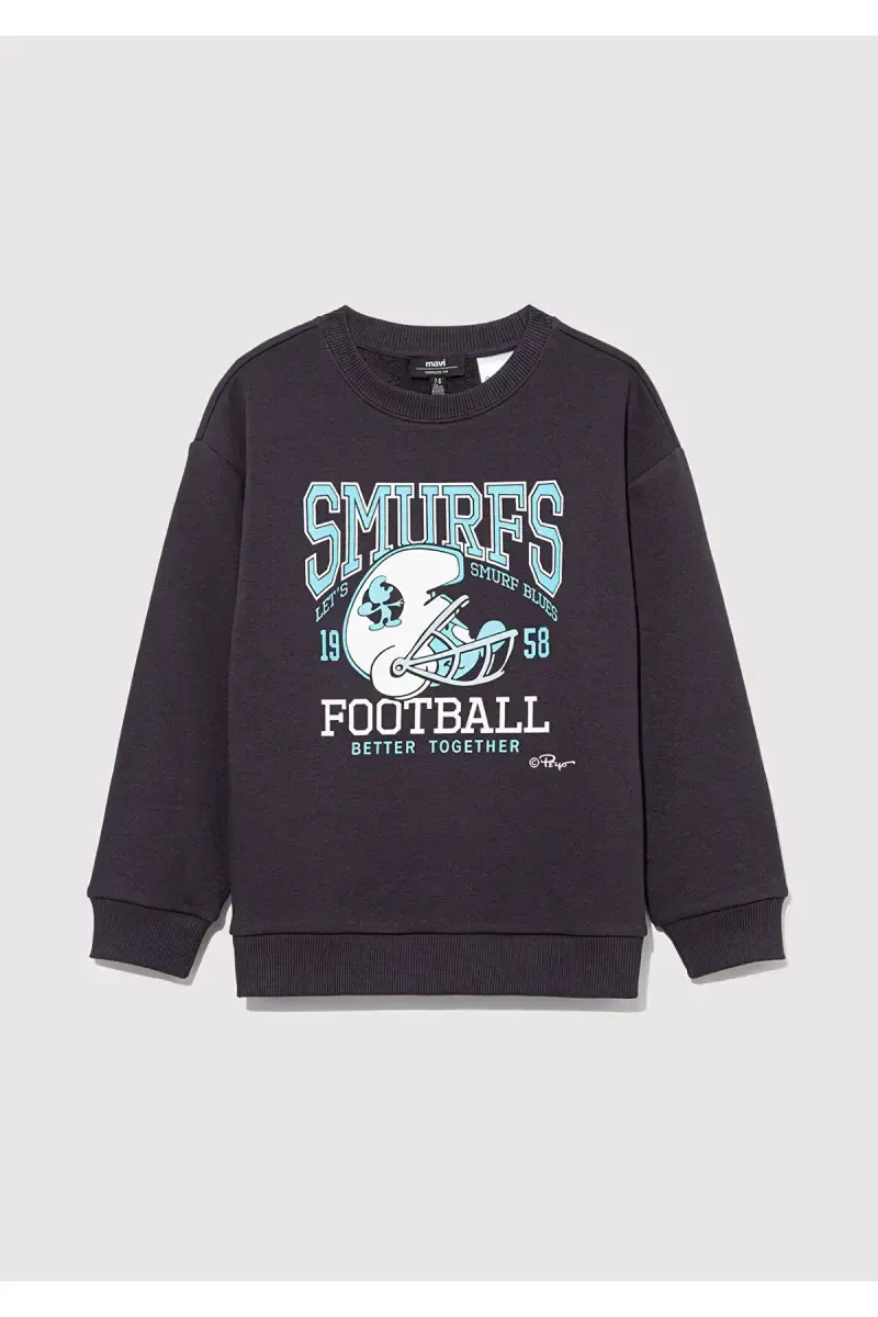 Из детской коллекции для мальчиков от Mavi представлен свитшот антрацитового цвета с принтом Смурфики. Он с начесом и свободного покроя. Предназначен для создания образа в стиле оверсайз. Использованы материалы: 65% хлопка, 35% полиэстера. Имеет обычную посадку по талии.