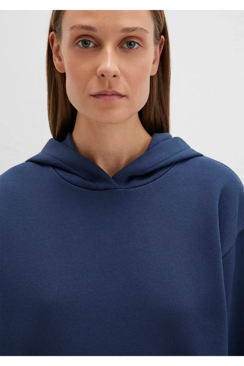 Базовая толстовка с капюшоном темно-синего цвета 167299-70488 - Стиль и комфорт