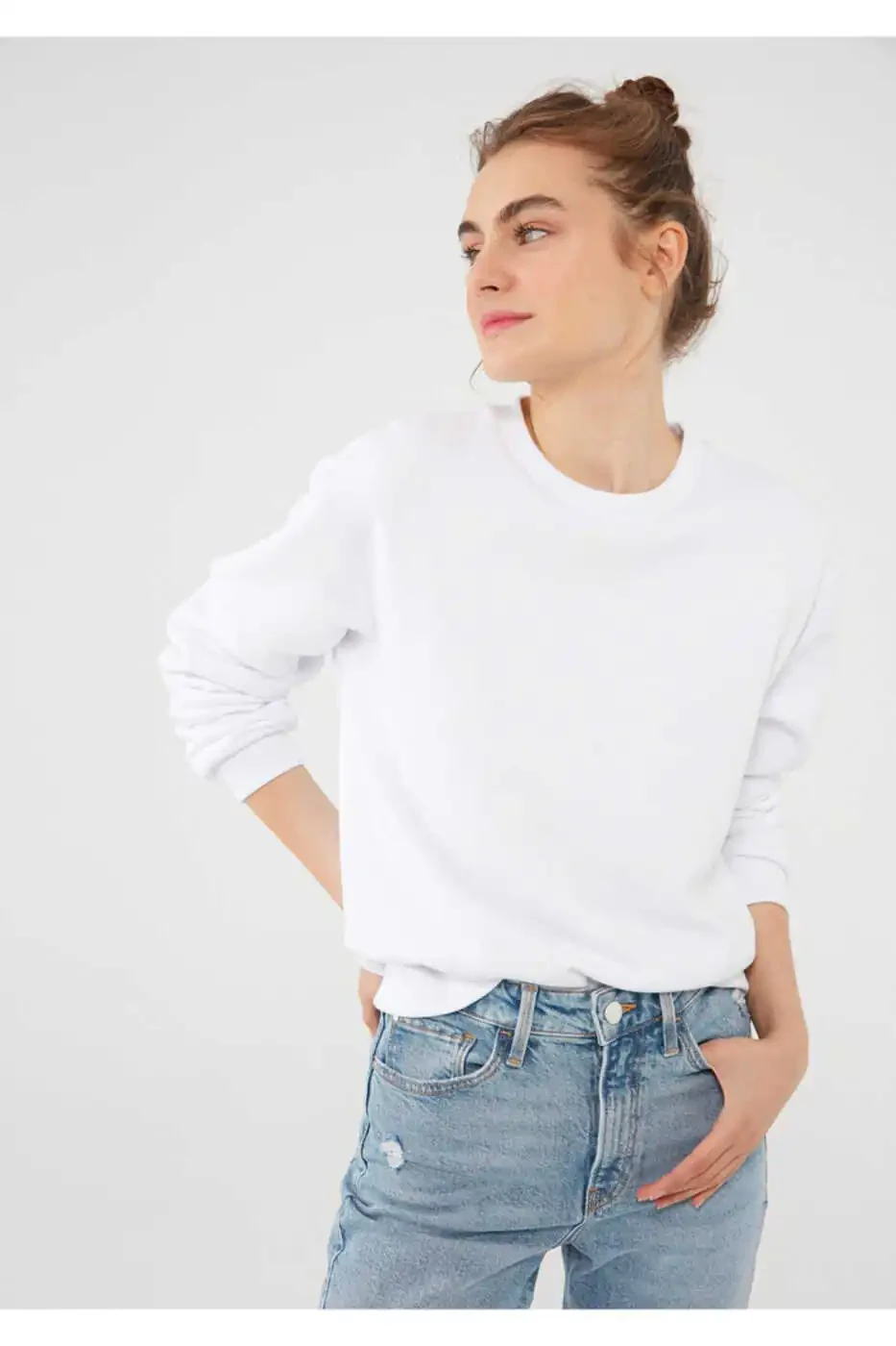 Ищете стильный и удобный свитшот, который станет неотъемлемой частью вашего повседневного стиля? Белый свитшот с круглым вырезом - это то, что вам нужно. Этот свитшот обеспечивает комфорт в течение всего дня благодаря мягкой и качественной ткани, а его круглый вырез придает ему современный и спортивный вид. Этот свитшот белого цвета, который подойдет к любой вашей одежде, идеально подходит для стильного повседневного образа.