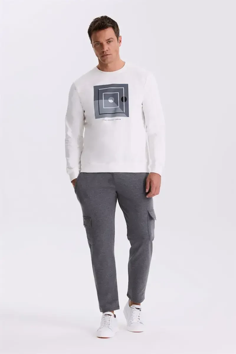 свитер slim fit, свитшот из 100% хлопка, бежевый свитшот, свитшот с принтом, свитшот с круглым вырезом