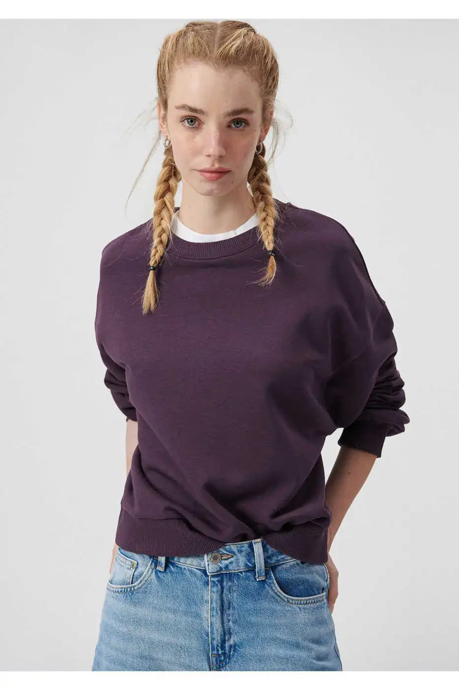 Свитшот с воротником-поло, фиолетовый, базовый изготовлен из качественных материалов и отличается долговечностью. Он стирается в стиральной машине для практичного использования.
