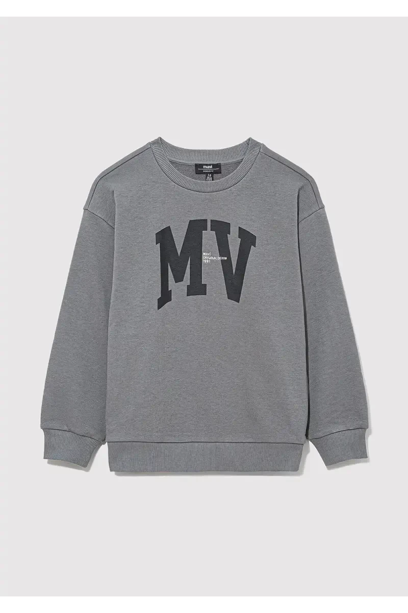 Свитшот серого цвета с логотипом Mv | Свитшот для мальчиков | Mavi