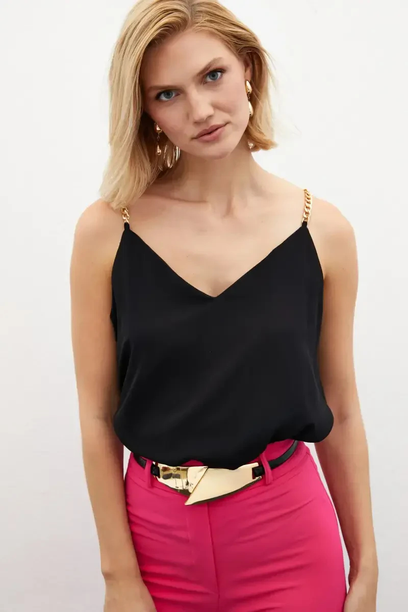 Испытайте стиль и комфорт с помощью Свободной блузки на бретельках с цепочками!