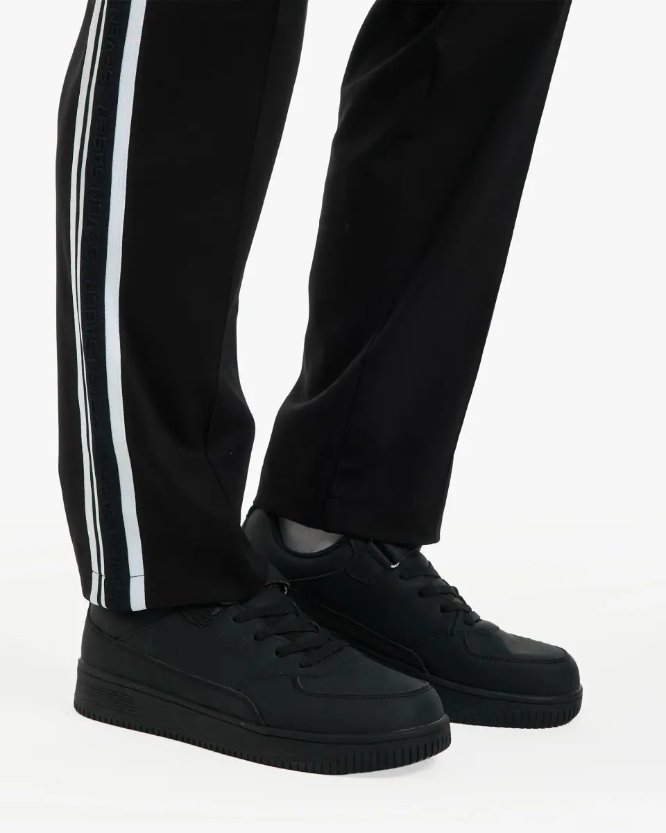 These pants offer a stylish, energetic look that supports an active lifestyle. They blend comfort with a modern design, making them suitable for everyday wear.Fabric composition: 100% cotton Waist type: elastic Pockets: side and back Details: contrasting side stripes Care: easy washing