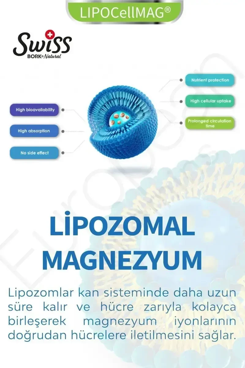A stressful lifestyle, a busy work schedule, and inadequate nutrition can negatively affect our body's magnesium levels, leading to many discomforts such as fatigue, muscle cramps, sleep problems, and mood swings. Swiss Bork Mag-5x Liposomal Magnesium is a highly bioavailable supplement designed to effectively provide your body with the magnesium it needs.