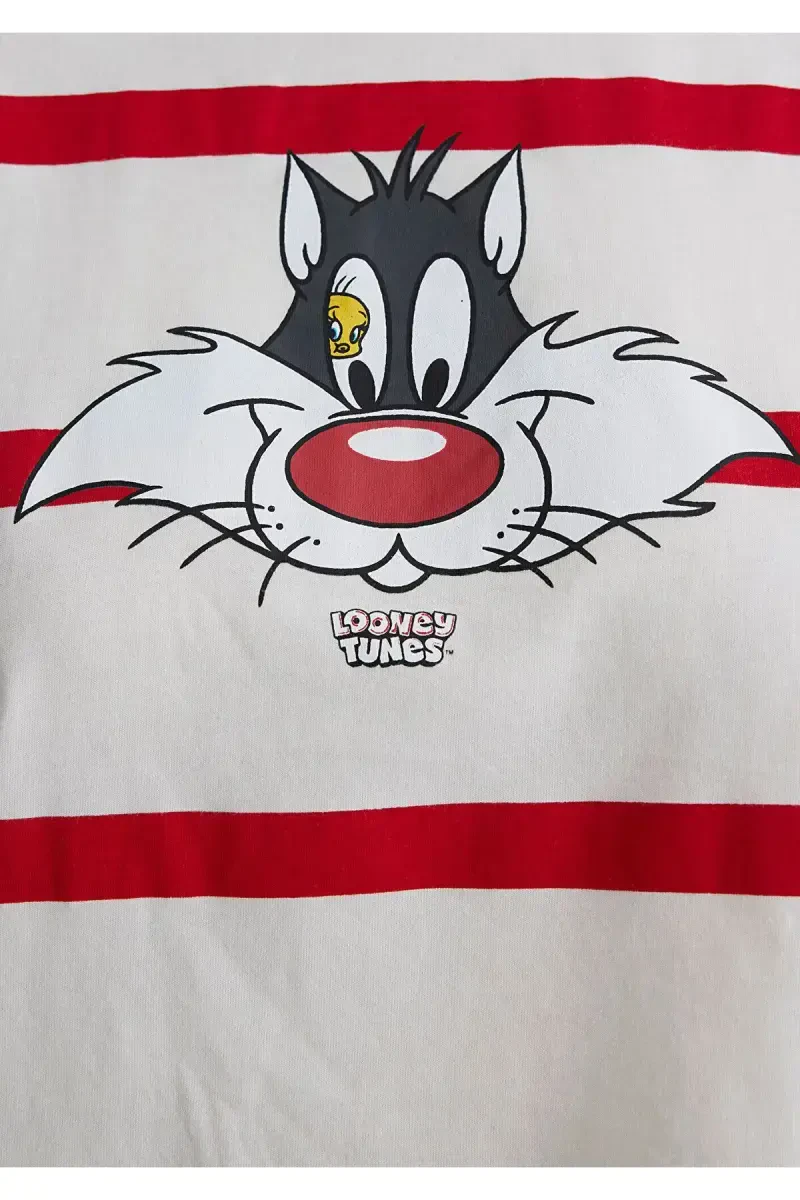 Sylvester tişört, kırmızı crop, pamuklu tişört, baskılı tişört, kısa kesim, kadın tişört, günlük tişört, rahat tişört, trend tişört, çizgi film tişört