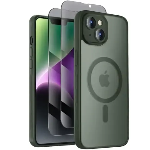 Symcele Designed for iPhone 14 Case, Compatible with MagSafe, with Privacy Screen Protectors X2, [Camera Protection] [15FT Military Drop Protection] Shockproof Phone Case, 6.1", Alpine Green