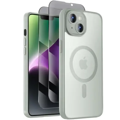 Symcele Designed for iPhone 14 Case, Compatible with MagSafe, with Privacy Screen Protectors X2, [Camera Protection] [15FT Military Drop Protection] Shockproof Phone Case, 6.1", Calke Green