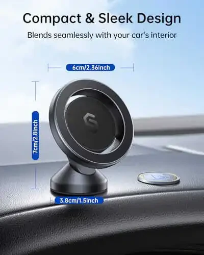 Very Important【Installation Tip】1.Clean the intended area with wet wipes, rubbing vigorously at least 10 times. 2. Wait 15 seconds for the surface to dry. Press firmly for 10 seconds and let the adhesive set for at least 5 hours before use. Tip: Slide your phone sideways to remove it, especially if the metal rings are applied, to avoid it from falling off. Easy to install, stays secure, and hassle-free to use! 【Exquisitely Crafted & Premium Quality】The SYNCWIRE MagSafe car mount is built from high-strength composite and heat-resistant plastic, ensuring superior stability and lasting durability. Its surface features a sleek anodized finish and metallic paint for both strength and a modern look. This mount is designed to withstand various driving conditions, making it the perfect choice for those seeking a durable and stylish car phone holder. Mounting Base Diameter: 3.8 cm. / 1.5 in 【Optimal Magnetic Balance】Equipped with N52-grade neodymium magnets, the MagSafe car phone mount provides an extremely strong magnetic hold, ensuring your phone stays securely attached, even on bumpy roads. Compatible with all MagSafe-enabled devices and MagSafe-compatible cases, it provides stability without compromising on ease of use. For non-magnetic case, just stick the metal ring provided outside the case. (NOTE: This car mount is designed solely for holding phones; no charging function.) 【Genuine 3M Adhesive】Using genuine 3M VHB Tape GPH-160GF, this magnetic phone holder for car guarantees a strong, reliable adhesive that withstands extreme temperatures from -40°F to 300°F. It holds firmly without deformation or detacModazoneent. For added convenience, we include an extra adhesive patch. Note: Avoid using on leather, suede, or uneven surfaces. Tip: For temperatures below 15°C, warm the adhesive for maximum grip. 【Wide Compatibility】The MagSafe car mount is designed to work seamlessly with MagSafe-enabled devices and MagSafe-compatible cases. For non-MagSafe phones or cases, the included metal ring makes installation a breeze. Whether you own a MagSafe case or not, this mount offers universal compatibility and effortless use. Installation tip: The metal ring cannot be installed on phone cases with uneven or irregular surfaces, and it should be attached to the outside of the phone case, not inside it. 【Compact and Adjustable】The SYNCWIRE MagSafe phone holders for your car features a compact design that fits perfectly into your car’s interior. The 360° rotation allows you to adjust the mount to the ideal viewing angle, making it easy to navigate or take calls while driving. Adjustable angle for optimal visibility. Keep your eyes on the road while enjoying seamless phone access.[Product Size: Car Mount Diameter:6cm/2.36in, Mounting Base Diameter:3.8cm/1.5in, Product Height:5.6cm/2.2in] 【Secure and Safe】With the SYNCWIRE MagSafe car phone holder, enjoy a secure and safe driving experience. Whether you're using GPS navigation, taking hands-free calls, or listening to music, the mount keeps your phone steady and within easy reach, ensuring you can focus on the road. Stays securely in place, even on bumpy roads or sharp turns. Enjoy a safer, more comfortable driving experience. 【No Signal Interference】Designed with a circular ventilation head, the SYNCWIRE MagSafe car mount ensures no signal interference and promotes optimal airflow, allowing effective heat dissipation for your phone. It reduces strain on your car's air vent while maintaining performance. Elevate your driving experience with a mount that keeps your phone cool, connected, and secure. Say goodbye to overheating or weak signals! 【What You Get】SYNCWIRE MagSafe Phone Holder for Car Dashboard x1, 3M Adhesive Pad x 1, Metal Ring x 2 (White & Black), User Guide x1, Warranty Card x 1, fast and friendly customer service within 24 hours to assist with any questions you may have. All you need for a smooth installation and hassle-free experience.