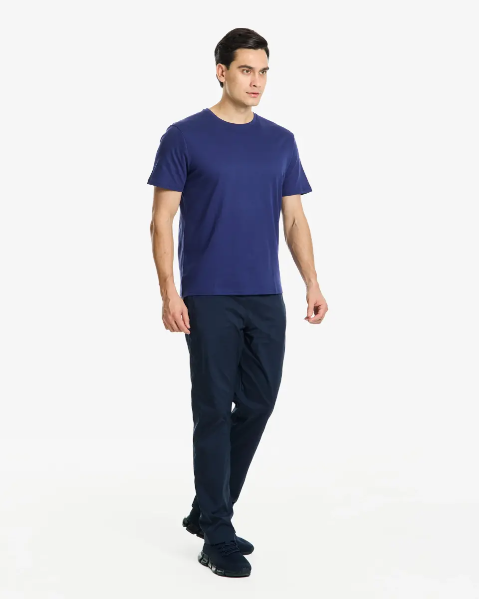 Футболка T-shirt - ЯРКО-СИНИЙ, незаменимая часть гардероба современного мужчины, идеально сочетает в себе стиль и комфорт. Этот базовый дизайн, выделяющийся ярким и привлекательным синим оттенком, был разработан специально для тех, кто хочет сохранять элегантность, не жертвуя простотой. Благодаря составу из 95% хлопка и 5% эластана она оставляет ощущение мягкости и естественности на коже в течение всего дня, а содержание эластана позволяет ей идеально адаптироваться к движениям вашего тела. Стандартный крой (regular fit) гарантирует, что вы будете чувствовать себя свободно и комфортно в течение дня, не испытывая стеснения. Эта футболка привлекает внимание своей универсальностью: ее можно носить как на интенсивных спортивных тренировках, так и во время приятных прогулок с друзьями в выходные или как дополнение к повседневным образам в стиле casual. Дизайн с круглым вырезом (round neck) придает ей неподвластную времени эстетику, позволяя легко сочетать ее с любой одеждой. Благодаря легкой структуре она не вызывает потоотделения, а дышащая ткань обеспечивает максимальный комфорт даже в жаркие дни. Благодаря качественному исполнению и прочной структуре ткани она сохраняет свою форму и яркий цвет как в первый день, даже после многократных стирок. Этот товар, являющийся одновременно стильным и практичным выбором, претендует на звание самой любимой и часто используемой вещи в вашем гардеробе. Эта уникальная вещь, созданная для того, чтобы вы чувствовали себя лучше и могли выразить свой стиль, не ограничивая свободу движений, сочетает в себе минимализм с роскошным оттенком.