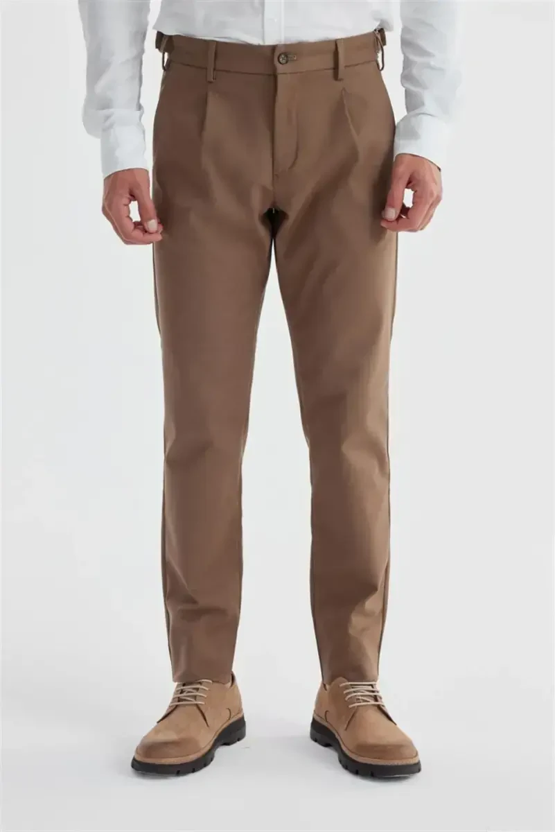 Taba Comfort Fit Juft Burmali Belbog'li Paxtali Kanvas Shim bilan qulaylik va uslubni birga his qiling. Ushbu maxsus dizayndagi shim, kun bo'yi qulayligingizni birinchi o'ringa qo'ygan holda, uslubingizdan voz kechmasligingizni ta'minlaydi. Zamonaviy erkakning garderobida bo'lishi kerak bo'lgan ushbu kiyim, ham kundalik foydalanish, ham maxsus kunlar uchun ajoyib tanlovdir. Shimning qulay bichimi harakat erkinligingizni cheklamaydi, taba rangi esa har qanday kombinatsiya bilan mos kelib, sizga cheksiz imkoniyatlar taqdim etadi. Juft burma detali shimga klassik va nafis ko'rinish beradi, belbog'li dizayni esa uslubingizni to'ldiradi. Yuqori sifatli paxtali kanvas mato chidamlilik va uzoq muddatli foydalanishni kafolatlaydi. Shu bilan birga, matoning nafas oladigan tuzilishi tufayli kun bo'yi terlash muammosini bartaraf etadi. Taba Comfort Fit Juft Burmali Belbog'li Paxtali Kanvas Shim nafaqat shim, balki hayot tarzidir. Kiyilgan zahotiyoq farq qiladi, o'ziga ishongan va uslubli erkaklarning sevimli kiyimiga aylanadi. Ish uchrashuvlaridan tortib dam olish kunlari sayrlarigacha bo'lgan har qanday muhitda bemalol kiyishingiz mumkin bo'lgan ushbu shim, garderobingizning eng sevimli kiyimiga aylanishga da'vogar. Shim matosida ishlatilgan %50 TENSEL (TENCEL), %47 PAMUK (COTTON) va %3 ELASTAN (ELASTANE) aralashmasi, ham tabiiy, ham moslashuvchan tuzilmani taqdim etadi. Tencel, ekologik toza tola bo'lish bilan birga, teriga yumshoq teginishni ta'minlaydi va namlik o'tkazuvchanligini qo'llab-quvvatlaydi. Paxta matoning nafas olish qobiliyatini oshiradi, elastan esa shimning harakatlaringizga moslashishiga yordam beradi. Shu tarzda, kun bo'yi qulayligingizdan voz kechmasdan zamonaviy ko'rinishingiz mumkin. Shimning tafsilotlariga e'tibor berish uning sifati va qiymatini ochib beradi. Tikuvlarning to'g'riligi, tokasining mustahkamligi va matoning tuzilishi shimning qanchalik ehtiyotkorlik bilan ishlab chiqarilganligini ko'rsatadi. Taba rangi, tuproq ranglariga mos kelganligi sababli, bej, jigarrang, to'q ko'k va hatto yashil kabi ranglar bilan osongina kombinatsiyalanishi mumkin. Bu ham shimni ko'p qirrali kiyimga aylantiradi. Xullas, Taba Comfort Fit Juft Burmali Belbog'li Paxtali Kanvas Shim, qulaylik, uslub va sifatni birlashtirgan, har bir erkakning garderobida bo'lishi kerak bo'lgan kiyimdir.