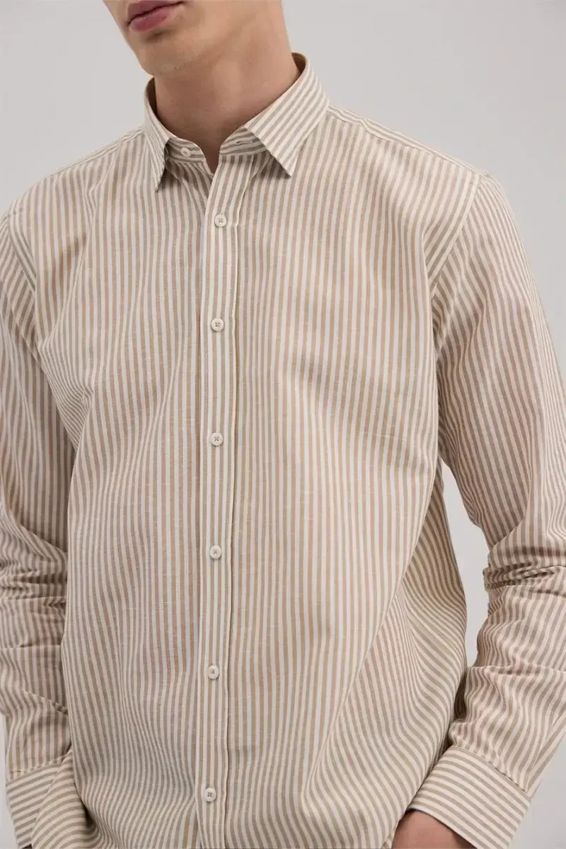 Taba Comfort Fit Keten Karışımlı Çizgili Gömlek, gardırobunuzun vazgeçilmez parçası olmaya aday. Sıcak yaz günlerinde serin ve ferah tutan keten karışımlı kumaşı, gün boyu konforlu bir kullanım deneyimi sunar. Gömleğin modern ve şık çizgili deseni, her ortama uyum sağlayabilen zamansız bir görünüm yaratır. İster iş toplantısında, ister hafta sonu gezisinde, ister özel bir davette giyin, her zaman stilinizi yansıtmanızı sağlar. Comfort fit kesimi, vücudunuzu sıkmadan rahat bir siluet oluşturur. Gömleğin düğmeleri kaliteli malzemeden üretilmiş olup, uzun ömürlü kullanım sağlar. Taba rengi, birçok farklı renkle kolayca kombinlenebilir, böylece farklı tarzlar yaratmanıza olanak tanır. Gömleğinizi chino pantolonlar, jeanler veya şortlarla tamamlayarak, her duruma uygun şık kombinler oluşturabilirsiniz. Keten karışımlı kumaşın nefes alabilen yapısı, terlemeyi önleyerek gün boyu ferah kalmanıza yardımcı olur. Gömleğin hafif ve ince dokusu, özellikle sıcak havalarda ideal bir seçim olmasını sağlar. Gömleğin yakası, klasik gömlek yakası şeklinde tasarlanmıştır ve kravat veya papyon ile de kullanılabilir. Gömleğin manşetleri düğmelidir ve istenirse katlanarak daha spor bir görünüm elde edilebilir. Taba Comfort Fit Keten Karışımlı Çizgili Gömlek, hem şıklığı hem de konforu bir arada arayan erkekler için mükemmel bir seçenektir. Bu gömlek, gardırobunuzun temel parçalarından biri olacak ve size uzun yıllar boyunca eşlik edecektir. Gömleğin kolay ütülenebilir özelliği, size zaman kazandırır ve her zaman bakımlı görünmenizi sağlar. Makinede yıkanabilir özelliği sayesinde de temizliği oldukça pratiktir. Taba Comfort Fit Keten Karışımlı Çizgili Gömlek ile tarzınızı yansıtın ve her ortamda dikkatleri üzerinize çekin.