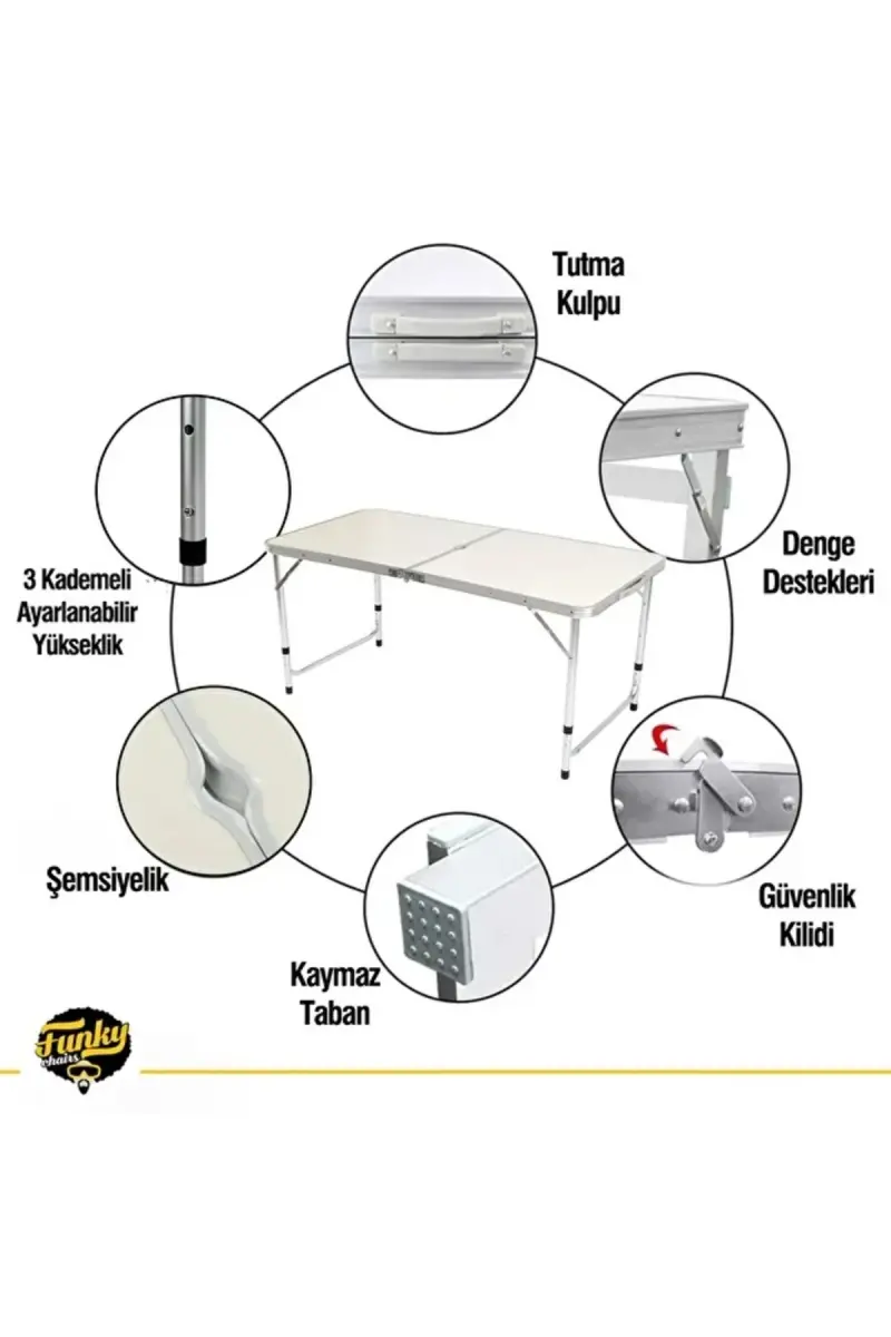 Bu ürün Avfoni tarafından gönderilecektir.Kampanya fiyatından satılmak üzere 100 adetten fazla stok sunulmuştur.İncelemiş olduğunuz ürünün satış fiyatını satıcı belirlemektedir.Bir ürün, birden fazla satıcı tarafından satılabilir. Birden fazla satıcı tarafından satışa sunulan ürünlerin satıcıları ürün için belirledikleri fiyata, satıcı puanlarına, teslimat statülerine, ürünlerdeki promosyonlara, kargonun bedava olup olmamasına ve ürünlerin hızlı teslimat ile teslim edilip edilememesine, ürünlerin stok ve kategorileri bilgilerine göre sıralanmaktadır.Bu üründen en fazla 15 adet sipariş verilebilir. 15 adedin üzerindeki siparişleri Trendyol iptal etme hakkını saklı tutar. Belirlenen bu limit kurumsal siparişlerde geçerli olmayıp, kurumsal siparişler için farklı limitler belirlenebilmektedir.15 gün içinde ücretsiz iade. Detaylı bilgi için [page="return_conditions"]tıklayın .Tabureli Katlanabilir Piknik Masası Seti ÜST DÜZEY KALİTE! Her Koşula Uygun Açık alan ve Kapalı alanda kullanıma uygundur Kolay kurulum Saniyeler içerisinde hazır hale gelir.KOLAY TAŞINABİLİR Tutma kulpu sayesinde taşıması kolaydır.Ürün Ağırlığı Setin ağırlığı 6.8 kg'dır.Ayarlanabilir Yükseklik Ayarlanabilir yükseklik sayesinde amaca yönelik uyum sağlayabilir.Dayanıklı Alüminyum gövde Alüminyum konstrüksiyon, sağlamlık kapasitesini en üst düzeye çıkarır Ürün Ölçüleri 60 X 60 X 6 cm. boyutlarındaki kapalı boyu ile yer kaplamadan taşınabilir.Açık ölçüleri ise 120x60 cm. şeklindedir.Setin ağırlığı 6.8 kg'dır.Kalın Çerceve 3 mm Alüminyum çerceveye sahiptir.