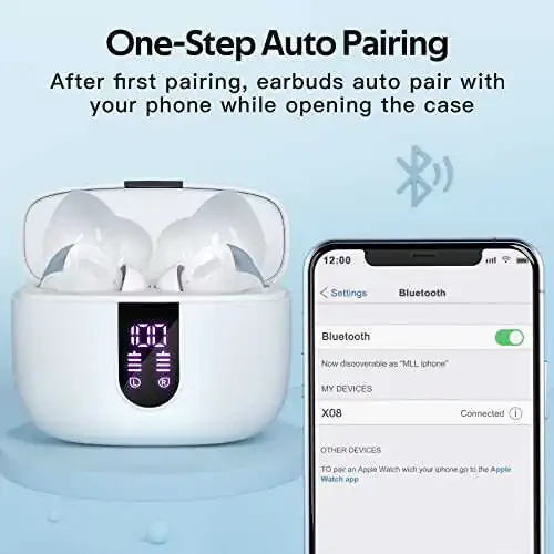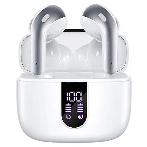 TAGRY Bluetooth headphones are the perfect choice for a premium audio experience, offering up to 60 hours of playback time, stylish LED power display, wireless charging case, IPX5 waterproof, built-in microphone, and comfortable fit.