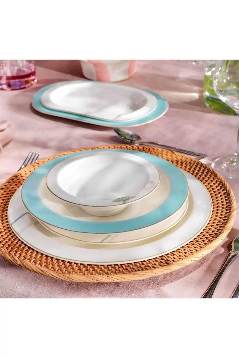 Tılsım Belle Ovqat To'plami, 60 donasi bilan stolingizni nafislik va zayofat bilan bezash uchun mukammal tanlov. Su yashil rangi tabiatning tinchligini stolingizga olib keladi va har bir ovqatlanishingizga alohida bir narsa qo'shadi.