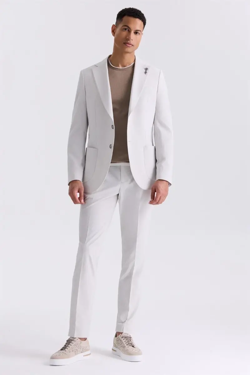 Modern ve Şık Taş Beyaz Slim Fit Mono Yaka Spor Takım Elbise