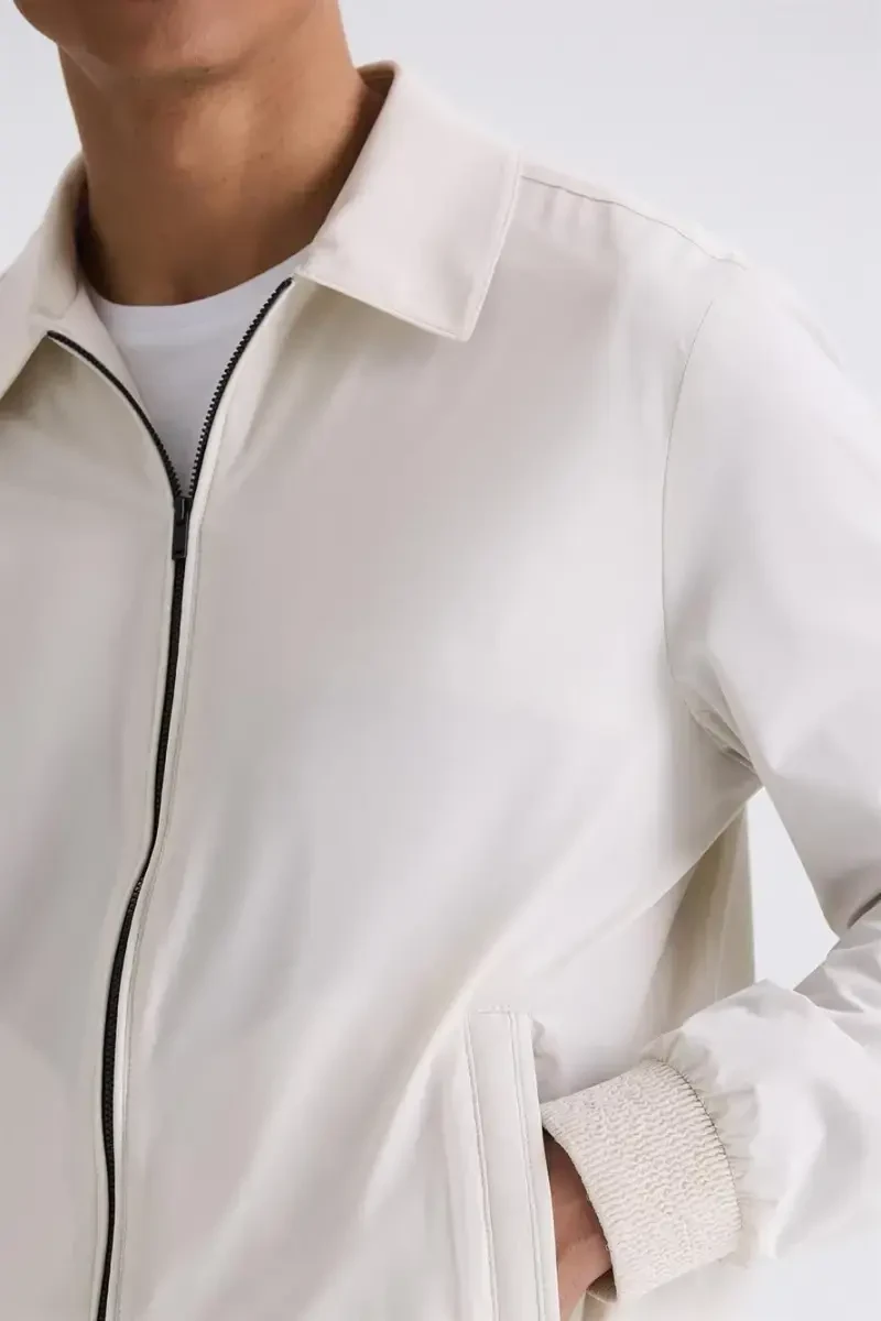**Stone Comfort Fit Mandarin Collar Season Coat**Made from a blend of 90% polyamide and 10% elastane, the Stone Comfort Fit Mandarin Collar Season Coat offers both comfort and style in an essential outerwear piece.**Features:*** 90% polyamide, 10% elastane fabric* Comfortable, stretchy construction* Mandarin collar* Button closure* Two zipped pockets* Two zipped side pockets**Measurements:**The model is 187 cm tall, weighs 78 kg, and has a shoulder width of 120 cm, wearing a size 50 coat.**Benefits:*** The comfortable, stretchy fabric allows for ease of movement.* The mandarin collar adds a touch of sophistication while keeping your neck warm.* The button closure and zipped pockets keep your belongings secure.* The versatile design makes it suitable for both formal and casual occasions.