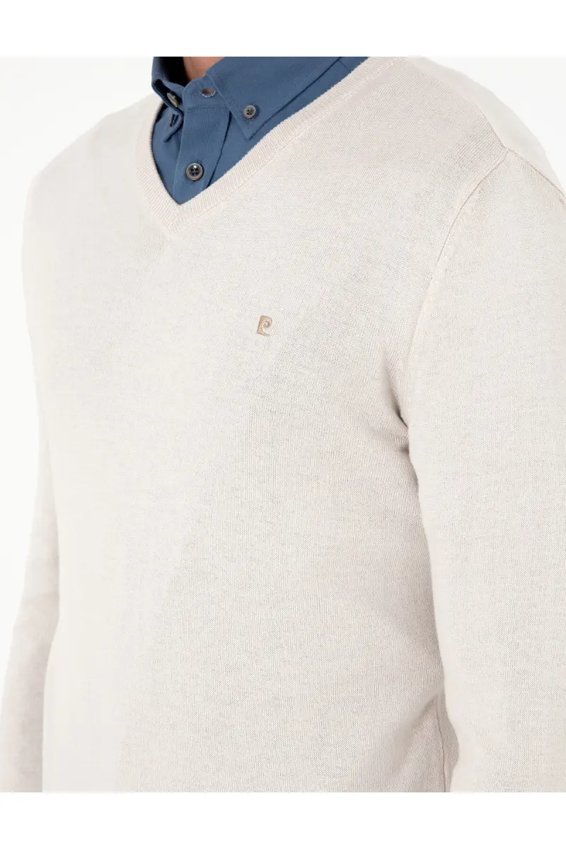 Taş Slim Fit V Yaka Basic Triko Kazak 50296622-VR049-Taş