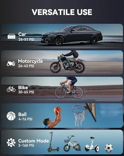 AsperX Taşınabilir Hava Kompresörü, araba, bisiklet, motosiklet ve top gibi çeşitli nesnelerin şişirilmesi için idealdir. Ancak, büyük hacimli ve yüksek basınç gerektiren uygulamalar için uygun değildir. Uzun süreli kullanımda aşırı ısınma riskini azaltmak için düzenli aralıklarla kullanımda ara vermeniz tavsiye edilir. Ürünle birlikte gelen kullanım kılavuzunu dikkatlice okuyunuz. Herhangi bir sorunla karşılaşırsanız, müşteri hizmetlerimizle iletişime geçmekten çekinmeyin. AsperX, güvenli ve verimli bir şişirme deneyimi sunmak için tasarlanmıştır.