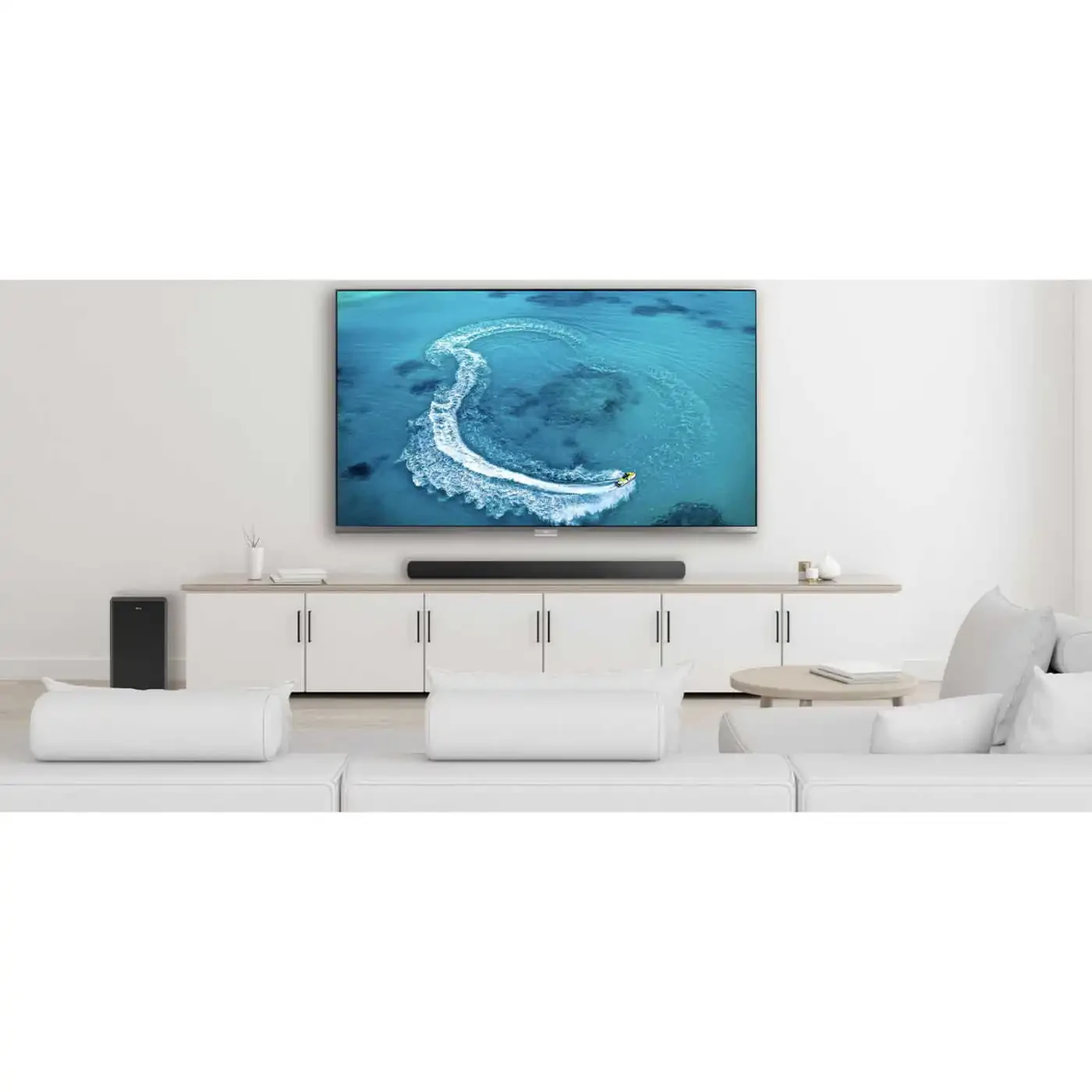 The TCL Alto 8 Plus 2.1.2 Channel Dolby Atmos Sound Bar with Wireless Subwoofer, Bluetooth – TS8212, 39-inch, Black lets you enjoy powerful, cinema-quality sound at home. Make all your entertainment more dynamic with Dolby Atmos technology, bringing multi-dimensional sound that moves around you for greater depth and excitement. Experience a room-filling, powerful soundstage that will envelop you—even from above—to give you cinema-like sound without additional components. Listen to louder, clearer dialogue so you’ll always be part of the conversation. Enjoy deep, rich bass that will make movies and music truly come to life. Feel the beats in music and the impact of an action scene in movies. Sleek, compact, and wireless, you can place the subwoofer virtually anywhere to adjust your exposure to huge, pulse-pounding bass. It also features Roku TV Ready for simple set up and control with your TCL Roku TV.