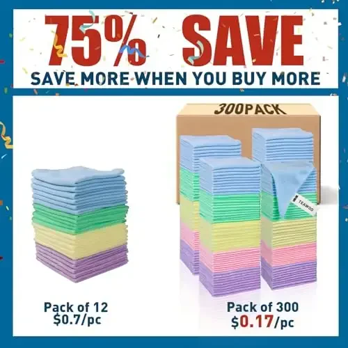 TEAWOO Microfiber Towels Bulk-300 Pack, Cleaning Cloths, Microfiber Towels for Cars, Cleaning Rags 5 Colors Assorted (12x12 inches)