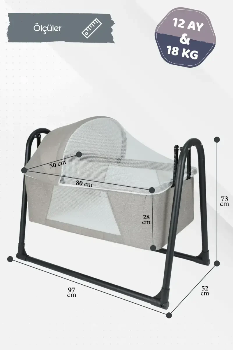 * **6 qadamli balandlik sozlamasi*** **Yuqoriga va pastga tebranish xususiyati*** **Qotirilishi mumkin bo'lgan xususiyat*** **Bir tomoni ochilib yopilishi mumkin bo'lgan xususiyat*** **Chivin to'ri bilan*** **Yechib olinadigan va yuviladigan mato*** **Portativ va g'ildirakli*** **0-18 oy orasida foydalanish*** **Ichki matras sovg'a*** **Yuqori sifatli material*** **Ergonomik dizayn*** **Chiroyli ko'rinish*** **Oson o'rnatish*** **O'lcham: 90x50 sm ichki matras*** **Rang: Jigarrang**