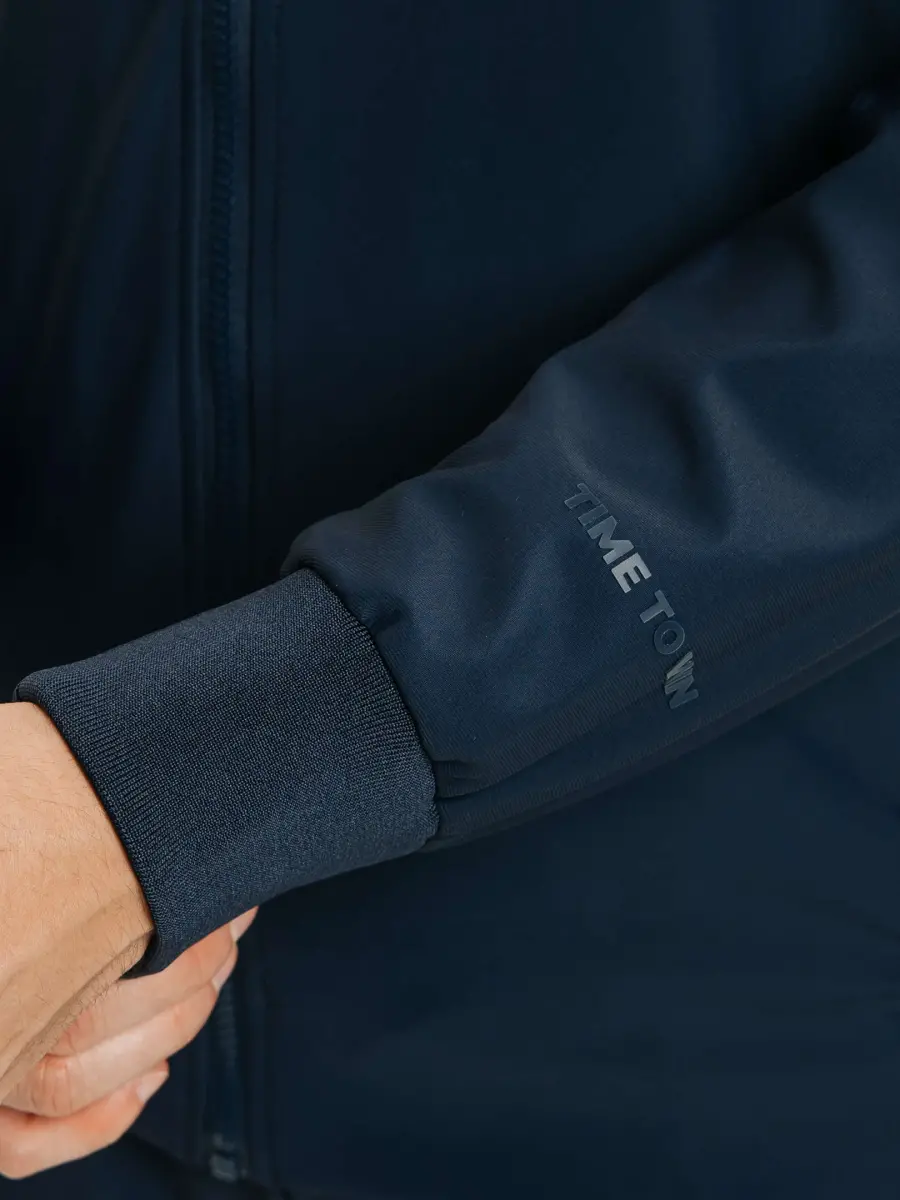 men's jacket, dark blue jacket, sports jacket, windbreaker, functional jacket, casual outerwear, modern jacket, seasonal jacket, zippered jacket, technological fabric jacket