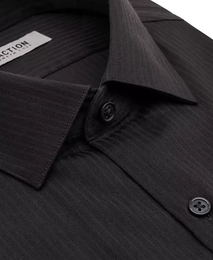 Keep your button-down look relaxed and in control with the signature stretch-flex shirt from Kenneth Cole Reaction. It features a slim fit that resists wrinkles all day long, keeping you looking sharp. The Techni-Cole Stretch, Men's Slim Fit Tonal Stripe Dress Shirt-Black, is perfect for everything from business to evenings out. Elevate your style with its rich black color and elegant tonal stripe detail. The soft and breathable fabric offers all-day comfort, while the slim fit subtly flatters your figure. Its flexible construction won't restrict your movement, allowing you to move freely throughout the day. Plus, its wrinkle-resistant fabric lets you skip the ironing at the end of the day. Ideal for job interviews, special occasions, or everyday wear, this shirt will become a staple in your wardrobe. Made from quality materials and featuring impeccable craftsmanship, the Techni-Cole Stretch shirt will continue to offer style and comfort for years to come. With its timeless design and high performance, the Techni-Cole Stretch, Men's Slim Fit Tonal Stripe Dress Shirt-Black, is a fundamental piece every man should have in his wardrobe. It's the perfect choice for those seeking a combination of style and comfort. Feel stylish and confident; look your best with Techni-Cole Stretch!
