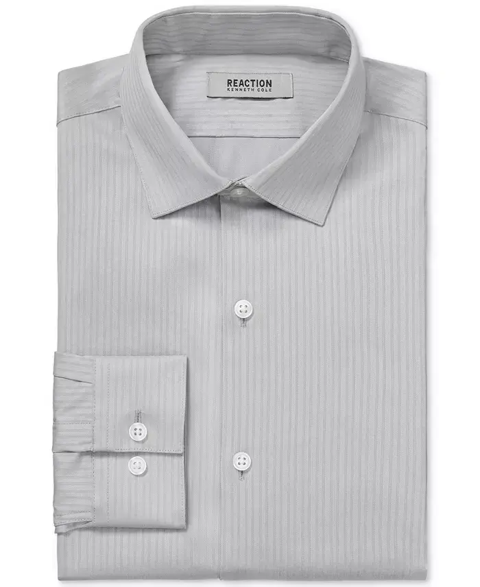 Designed for the modern man who wants both style and comfort all day long, the Techni-Cole Stretch, Men's Slim Fit Tonal Stripe Dress Shirt - Mountain Grey, introduces you to Kenneth Cole Reaction's signature stretch fabric. This slim-fit shirt is designed to keep up with the pace of daily life. While offering a classic look, its flexible construction doesn't restrict your movement and provides a perfect fit all day long. Made from a high-quality, wrinkle-resistant blend of cotton, polyester, and elastane, the fabric is breathable and maximizes your comfort throughout the day. With its elegant grey striped design in subtle tones, the Techni-Cole Stretch shirt will highlight your style both in your professional life and at special events, becoming an indispensable part of your wardrobe. Its long-sleeved, button-down design offers practical and stylish use, while its slim fit perfectly hugs your body, creating a modern and elegant look. Its machine-washable feature also saves you time. This shirt, a must-have in every man's wardrobe who wants to stay stylish and comfortable even under the challenging conditions of daily life, is one of the best ways to show that you value yourself and your style. With its perfect fit and impeccable style, the Techni-Cole Stretch shirt will make you feel special and confident. From job interviews to dinner parties, this shirt guarantees you'll look stylish and comfortable at all times, making it the easiest way to complete your style. This unique design, which combines comfort and style, is specially designed to offer you a unique experience. The Techni-Cole Stretch, Men's Slim Fit Tonal Stripe Dress Shirt - Mountain Grey, will make a difference with its quality and style, and it's waiting for you.