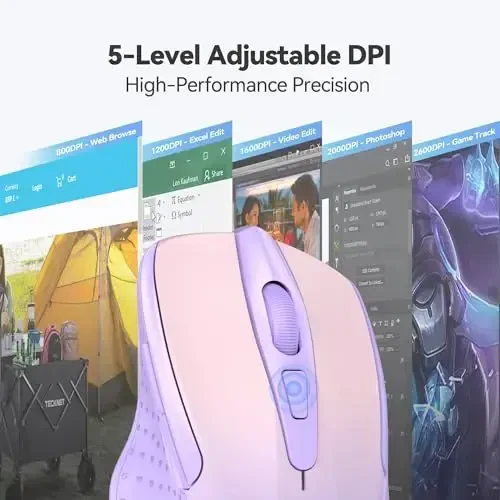 Благодаря передовой технологии оптического отслеживания, беспроводная мышь TECKNET обеспечивает высокую производительность и точность на любой поверхности. Благодаря 6 различным настройкам DPI (800/1200/1600/2400/3200/4000) вы можете регулировать скорость и чувствительность курсора по своему усмотрению. Независимо от того, занимаетесь ли вы точной графикой или играете в динамичные игры, беспроводная мышь TECKNET всегда обеспечит вам лучшую производительность. Благодаря интеллектуальному управлению курсором, вы всегда сможете легко добраться до нужной точки.
