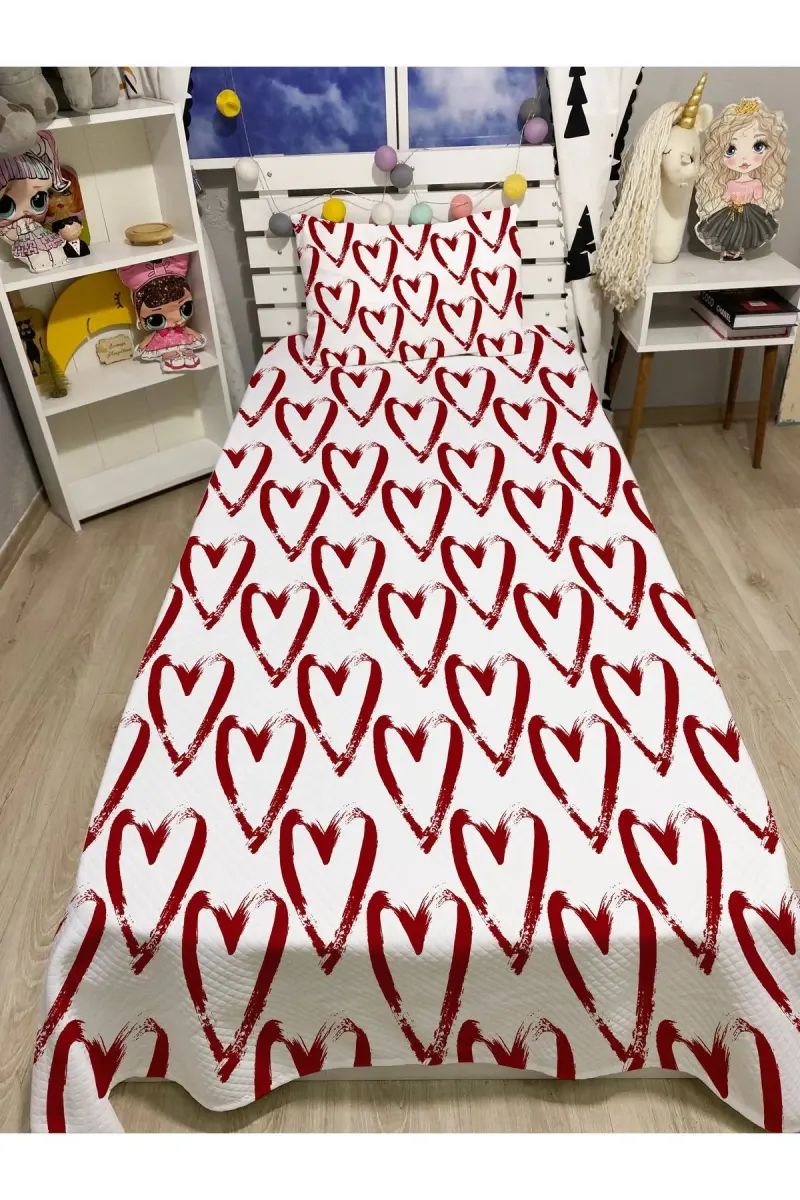 Tek Kişilik ROMANTİK KIRMIZI Kalpli Pike Takımı, yatak odanıza aşk dolu bir atmosfer katmak için tasarlandı. Yoğun bir günün ardından rahat bir uykuya dalarken, bu özel tasarım pike takımının yumuşak dokunuşuyla kendinizi şımartın. Kırmızı rengin sıcaklığı ve kalpli desenlerin romantizmi, yatak odanızı adeta bir aşk yuvasına dönüştürecek. Yüksek kaliteli pamuklu kumaşı sayesinde, cildinize nazikçe dokunur ve gece boyunca terlemeyi önleyerek konforlu bir uyku deneyimi sunar. Tek kişilik yataklar için ideal boyutlarda üretilen bu pike takımı, kolayca serilip toplanabilir ve uzun ömürlü kullanım için dayanıklıdır. Üstelik, şık tasarımı sayesinde sadece uyku saatlerinde değil, gün içinde de yatağınızın üzerinde dekoratif bir unsur olarak kullanılabilir. Sevdiklerinize özel bir hediye vermek isterseniz, Tek Kişilik ROMANTİK KIRMIZI Kalpli Pike Takımı mükemmel bir seçim olacaktır. Onlara hem kullanışlı hem de anlamlı bir armağan sunarak, sevginizi en güzel şekilde ifade edebilirsiniz. Yatak odanızda romantik bir atmosfer yaratmak ve konforlu bir uyku deneyimi yaşamak için Tek Kişilik ROMANTİK KIRMIZI Kalpli Pike Takımı'nı hemen sipariş verin! Bu özel tasarım pike takımı, sadece bir uyku aracı değil, aynı zamanda yatak odanızın dekorasyonunu tamamlayan şık bir detaydır. Kırmızı rengin enerjisi ve kalpli desenlerin romantizmi, odanıza pozitif bir hava katarken, yüksek kaliteli pamuklu kumaşın yumuşaklığı sizi adeta sarar. Gece boyunca rahat bir uyku uyumanızı sağlayan bu pike takımı, aynı zamanda kolayca temizlenebilir ve ütülenebilir özelliktedir. Böylece, her zaman ilk günkü gibi yeni ve canlı görünümünü korur. Tek Kişilik ROMANTİK KIRMIZI Kalpli Pike Takımı, sadece sizin için değil, sevdikleriniz için de harika bir hediye seçeneği olabilir. Onlara sevginizi göstermenin en güzel yolu, kullanışlı ve şık bir hediye vermektir. Bu pike takımı, onların yatak odalarına romantik bir dokunuş katarken, aynı zamanda konforlu bir uyku deneyimi yaşamalarını sağlar. Unutmayın, iyi bir uyku, sağlıklı bir yaşamın temelidir. Tek Kişilik ROMANTİK KIRMIZI Kalpli Pike Takımı ile hem yatak odanızı güzelleştirin hem de uyku kalitenizi artırın.
