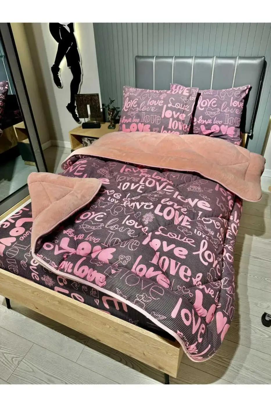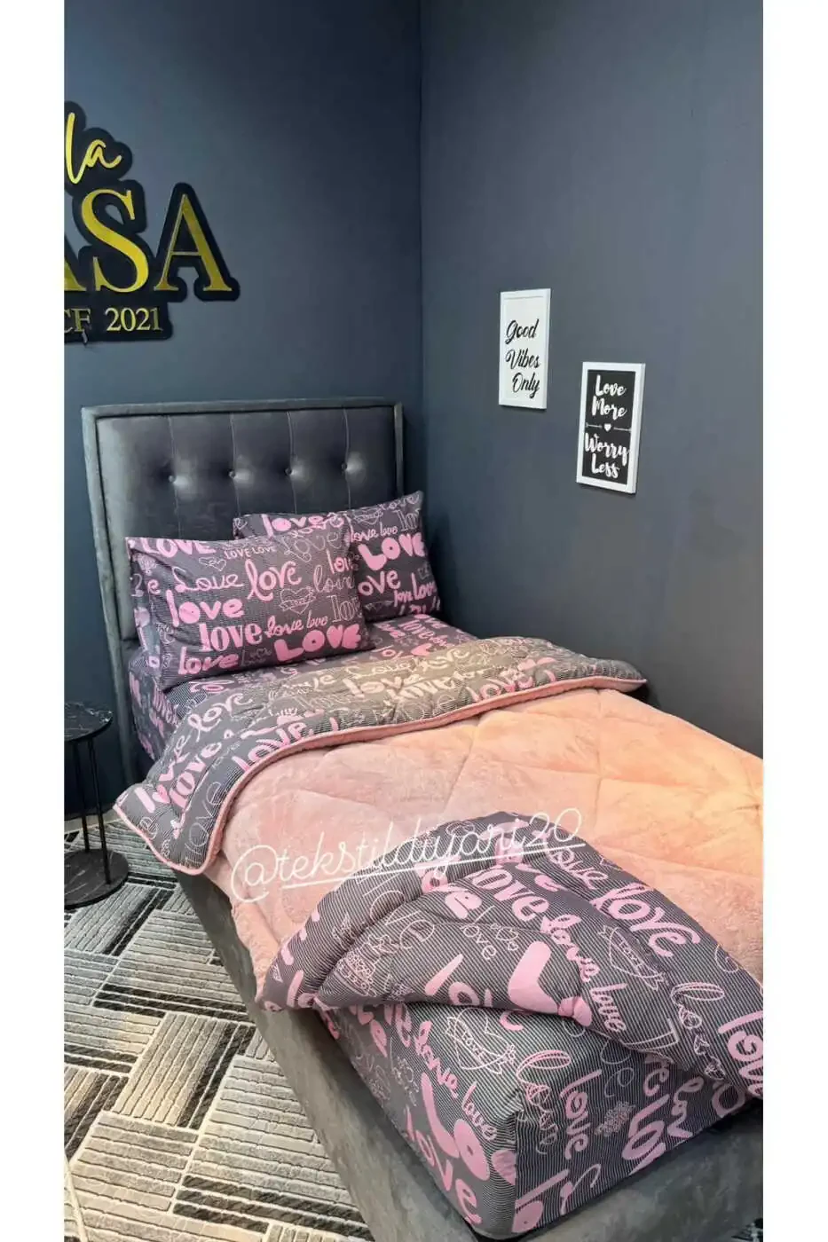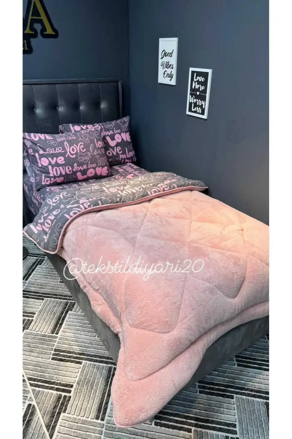 Tek Kişilik Welsoft Pufidik Uyku Seti (Lastikli Çarşaflı) Pudra Love - Uyku Konforu İçin