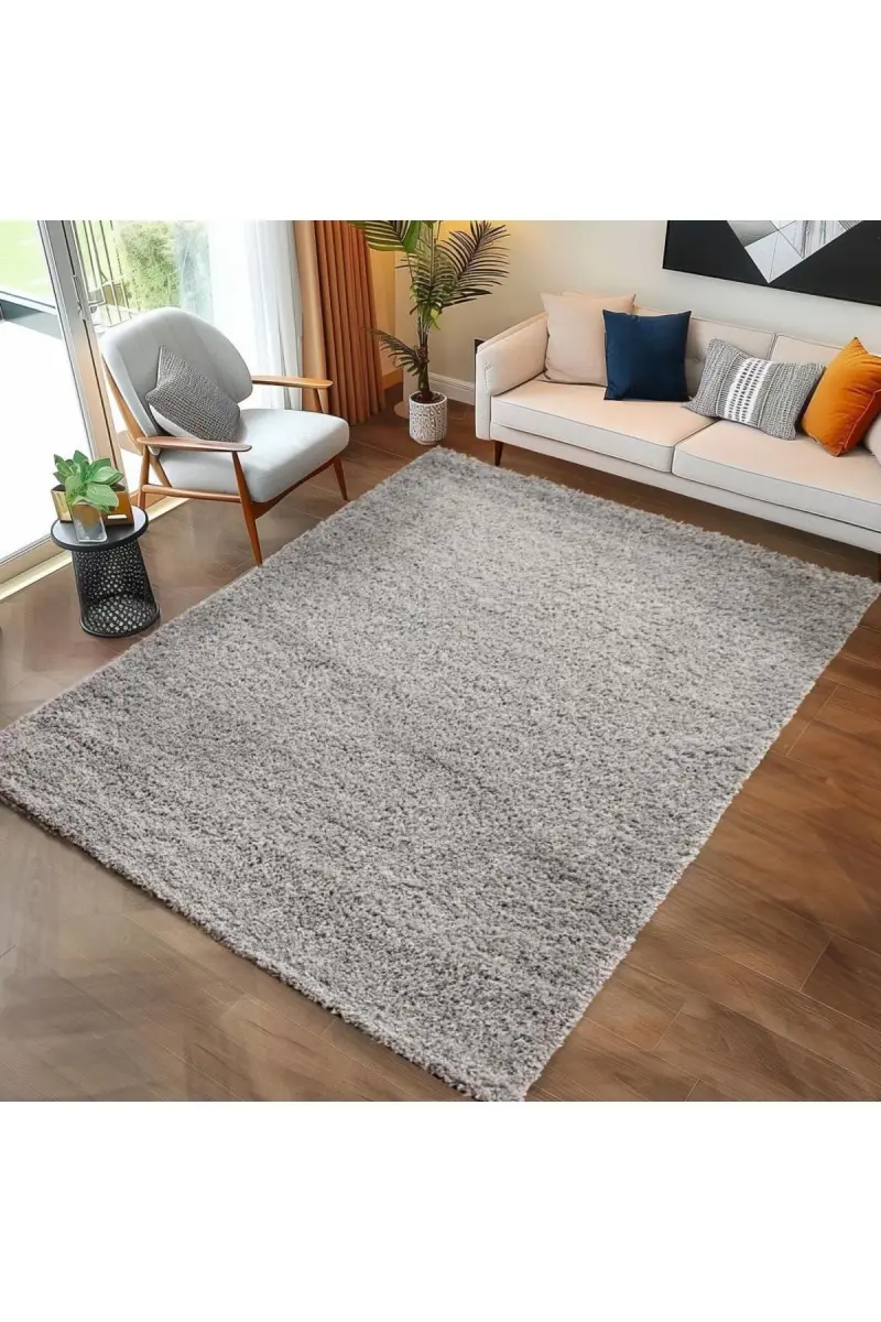 Tek Renk Desensiz Açık Gri Yumuşak Post Peluş Shaggy Halı Salon Oturma Odası Yolluk Mutfak Halısı-Açık Gri