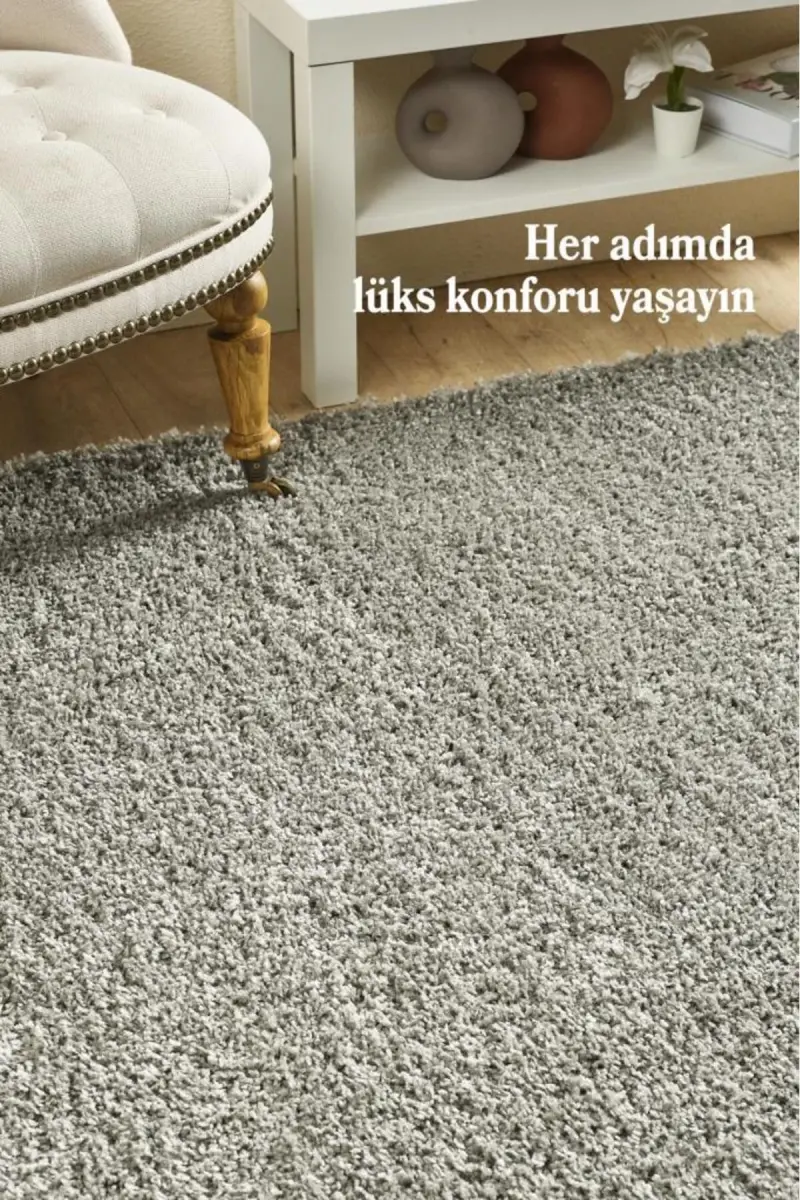 Tek Renk Desensiz Açık Gri Yumuşak Post Peluş Shaggy Halı Salon Oturma Odası Yolluk Mutfak Halısı-Açık gri
