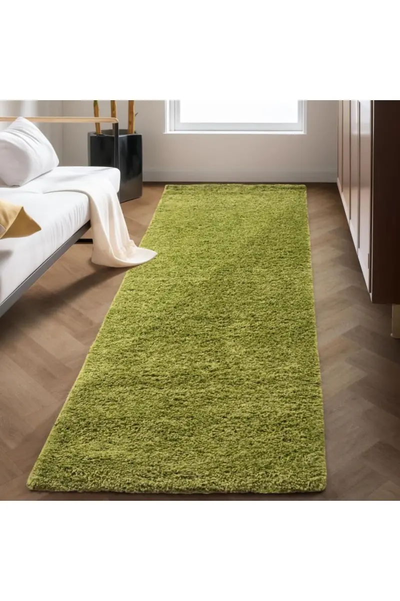 Tek Renk Desensiz Yeşil Yumuşak Post Peluş Shaggy Halı Salon Oturma Odası Yolluk Mutfak Halısı-Yeşil