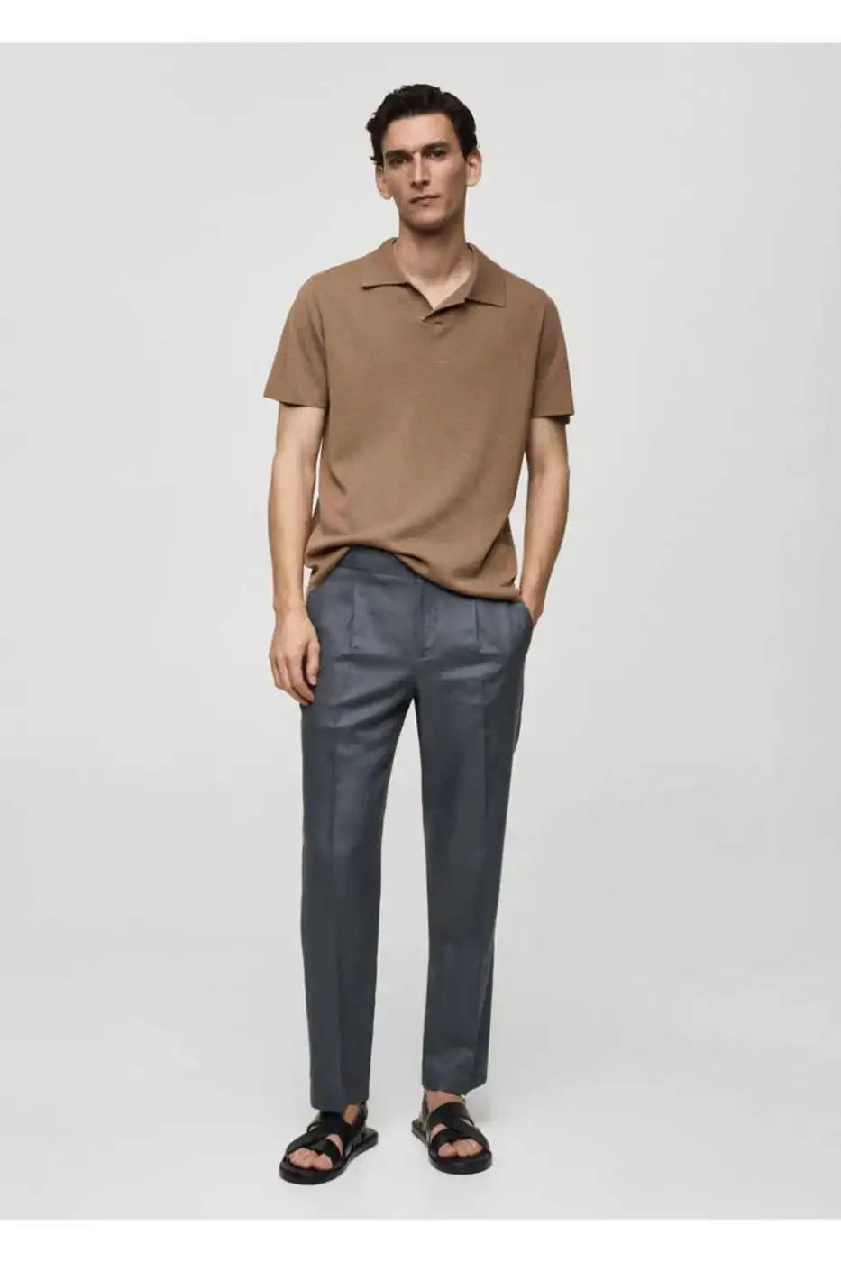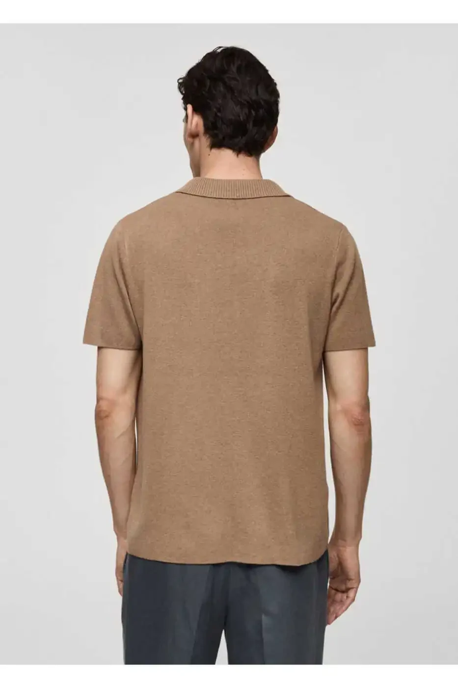 To'qimali paxtadan ishlangan polo futbolka, polo yoqasi, V shaklidagi yoqa, kalta pirak, qulay, uslub