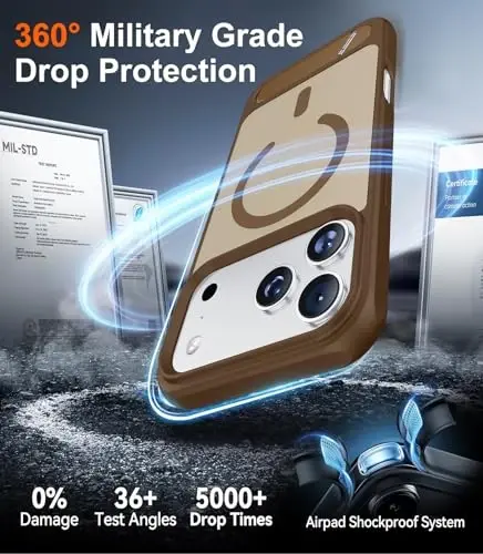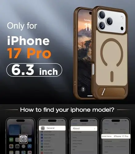 The Temdan Designed for iPhone 17 Pro Case offers a perfect combination of protection and elegance for your iPhone 17 Pro. With its [Built-in Invisible Kickstand] feature, you can prop your phone at any angle for hands-free use. It's ideal for watching movies, video calls, or simply checking your notifications. The [Compatible with MagSafe] feature ensures seamless compatibility with your MagSafe accessories, optimizing your wireless charging experience. Thanks to the strong magnets, your phone securely attaches to the charger, eliminating the risk of slipping or falling during charging. The [Military Grade Shockproof] feature provides superior protection against drops, impacts, and scratches. This case, tested to military standards, ensures durability against the rigors of daily use. The slim and translucent matte design preserves the original beauty of your phone while offering a stylish look. The Desert Brown color adds a sophisticated touch to your device. Keep your phone safe without sacrificing style with the Temdan Designed for iPhone 17 Pro Case. This case is not just a protective tool but also an accessory that enriches your phone's usage experience. With its superior material quality and carefully designed details, it offers long-lasting use. Provide your phone with the protection and elegance it deserves with the Temdan Designed for iPhone 17 Pro Case.