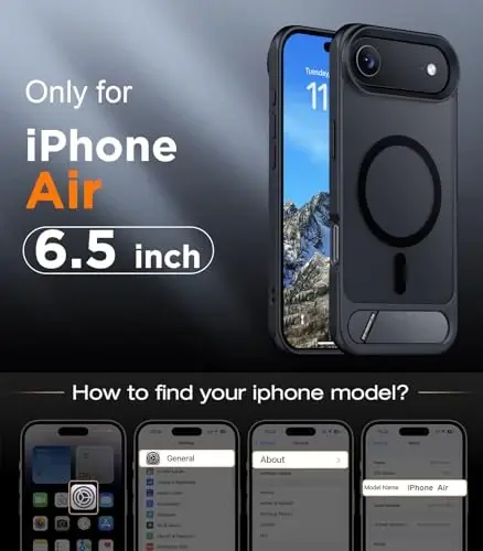 Temdan Designed for iPhone Air Case is a stylish and protective case specially designed for your iPhone 17 Air 6.5-inch model. This case provides superior defense against the risks of daily use while preserving the elegance of your phone. Having successfully passed military-grade drop tests, this case absorbs impacts, preventing damage to your device. Made of high-quality materials, the Temdan iPhone Air Case offers long-lasting use and does not cause problems such as yellowing or fading over time. Thanks to its integrated, invisible stand feature, you can easily use your phone in landscape mode. It allows your phone to stand at an ideal angle for watching movies, making video calls, or just surfing the internet. When not in use, the stand is completely hidden and does not spoil the stylish look of the case. MagSafe compatibility makes your wireless charging experience even easier. You can quickly and safely charge your iPhone by placing it on the MagSafe charger without removing the case. It also works seamlessly with other MagSafe accessories, so you can take advantage of all the benefits of the ecosystem. Thanks to its slim and lightweight design, it does not add extra weight or bulk to your phone. It can be easily carried in a pocket or bag. The translucent matte surface offers a stylish look by slightly showing the color and logo of your iPhone. At the same time, the surface minimizes fingerprints and smudges, so your phone always looks clean and tidy. The ergonomic design allows you to hold your phone comfortably in your hand and prevents slipping. It offers easy access to all buttons and ports. Temdan Designed for iPhone Air Case is not just a case, but also a style statement for your iPhone. With its black color, it adapts to any environment and complements the elegance of your iPhone. It is an ideal choice for those looking for both protection and aesthetics. If you don't want to compromise on style while keeping your phone safe, this case is for you. Whether in daily use or at special events, your iPhone will always be safe and stylish.