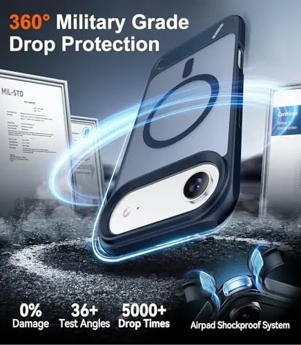 Чехол Temdan, разработанный для iPhone Air, обеспечивает превосходную защиту и непревзойденное удобство для вашего iPhone. Этот чехол предлагает возможность использования в режиме hands-free благодаря встроенной невидимой подставке, а также безупречно совместим с магнитными аксессуарами благодаря технологии MagSafe. Благодаря защите от ударов военного класса он обеспечивает защиту военного уровня от падений и ударов, сохраняя ваше устройство в безопасности. Этот чехол, сочетающий в себе стиль и функциональность благодаря тонкому и полупрозрачному матовому дизайну, специально разработан для моделей iPhone Air с диагональю 6,5 дюйма. Синий цвет отражает ваш стиль, сохраняя при этом элегантность вашего телефона. Благодаря сверхмагнитным свойствам вы можете безопасно подключаться к аксессуарам MagSafe, таким как магнитные зарядные устройства, кошельки, аккумуляторные блоки и автомобильные крепления. Идеально выровненное магнитное кольцо делает беспроводную зарядку быстрее и безопаснее, позволяя вам наслаждаться быстрой зарядкой в любое время и в любом месте. Встроенное магнитное кольцо прошло тысячи часов испытаний под высоким давлением, поэтому оно безопасно и никогда не упадет и не сломается. Инновационная подставка hands-free обеспечивает более стабильный и разумный угол обзора благодаря угловой конструкции. Благодаря индуктивным подшипникам и конструкции магнитной пряжки он выдерживает более 30 000 испытаний на складывание и поддерживает многоугольную остановку, чтобы вы могли наслаждаться удобством своей жизни. Этот чехол, разработанный для надежной защиты от падений, был протестирован более 2500 раз и не был поврежден, несмотря на падения со всех сторон. Кроме того, этот чехол обеспечивает всестороннюю защиту вашего телефона; приподнятый край экрана на 1,5 мм и приподнятый край камеры на 2,0 мм обеспечивают большую безопасность вашего телефона и защищают ваше дорогое устройство от неожиданных царапин, падений, ударов, пятен и любых повреждений. Чехол Temdan для iPhone Air, уникально и деликатно разработанный, изготовлен из полупрозрачного матового материала премиум-класса, обеспечивающего шелковистое ощущение прикосновения. Нескользящая конструкция рукоятки сбоку чехла обеспечивает эффективное сопротивление скольжению и сцепление. Кроме того, благодаря технологии защиты от отпечатков пальцев вы можете легко очистить все отпечатки пальцев легким протиранием, чтобы они стали невидимыми, что обеспечивает вам превосходное удобство использования. Этот новый модернизированный чехол совместим только с версией iPhone Air 6.5 дюймов 2025 года. Мы предлагаем 365-дневную услугу замены дефектных продуктов, и если у вас есть какие-либо вопросы, вы получите эффективное решение.