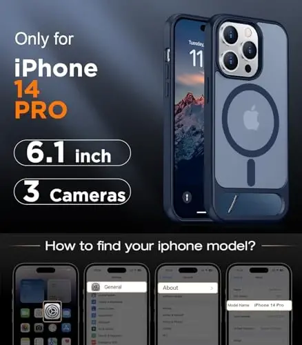 The Temdan Magnetic Compatible with iPhone 14 Pro Case is an innovative case designed specifically for the iPhone 14 Pro 6.1 inch (2022) model, offering superior protection and convenient features. This case not only keeps your device safe but also simplifies your daily use. With its built-in, invisible, multi-angle stand, MagSafe compatibility, and military-grade drop protection, this case is the perfect complement to your iPhone 14 Pro. Thanks to its super-strong magnets, it provides seamless compatibility with your MagSafe accessories, speeding up and securing your wireless charging experience. The case’s stylish, translucent matte surface gives your phone an elegant look, while its special fingerprint-resistant coating keeps it clean and flawless at all times. Its ergonomic design ensures a comfortable grip and its anti-slip sides provide secure handling. The Temdan Magnetic Case is not just a case, but an accessory that enriches your iPhone 14 Pro experience. It is made of high-quality materials, is long-lasting, and protects your phone against the wear and tear of daily use. Whether you're charging, watching videos, or just want to keep your phone safe, the Temdan Magnetic Case always delivers the best performance. It offers ease of use with precise cutouts and button covers that provide easy access to all of your phone's functions. It is an ideal choice for those looking for style, durability, and functionality in one package.